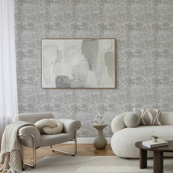 Jemný les v hmle, jemné béžovo-šedé tóny