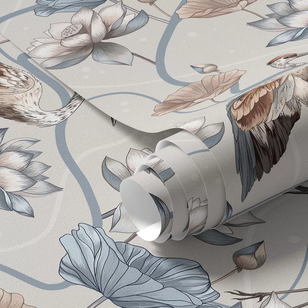Tapeta Kompozícia so žeriavmi a lotosmi v pastelových farbách Nr. a00064
