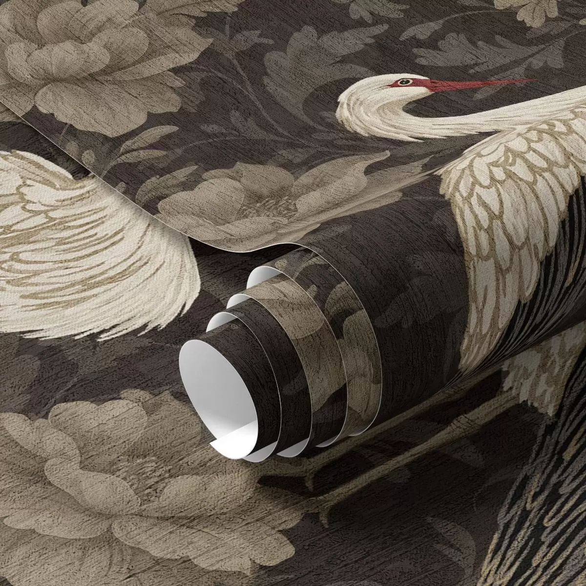 Tapeta Žeriavy medzi veľkými kvetmi v klasickej pastelovej palete Nr. a00108
