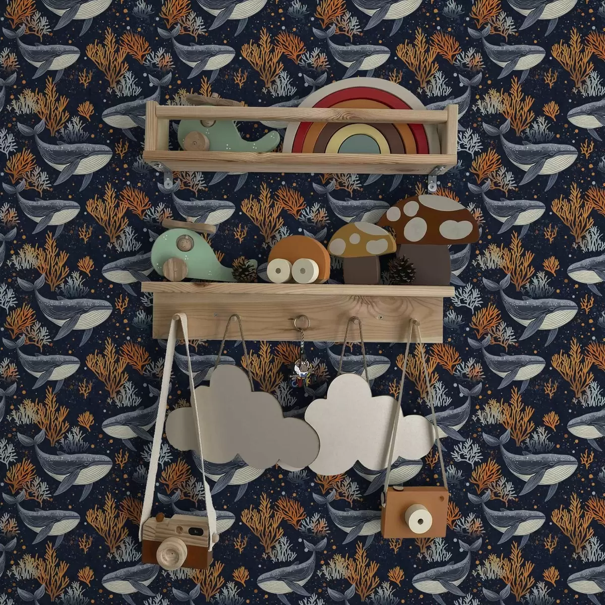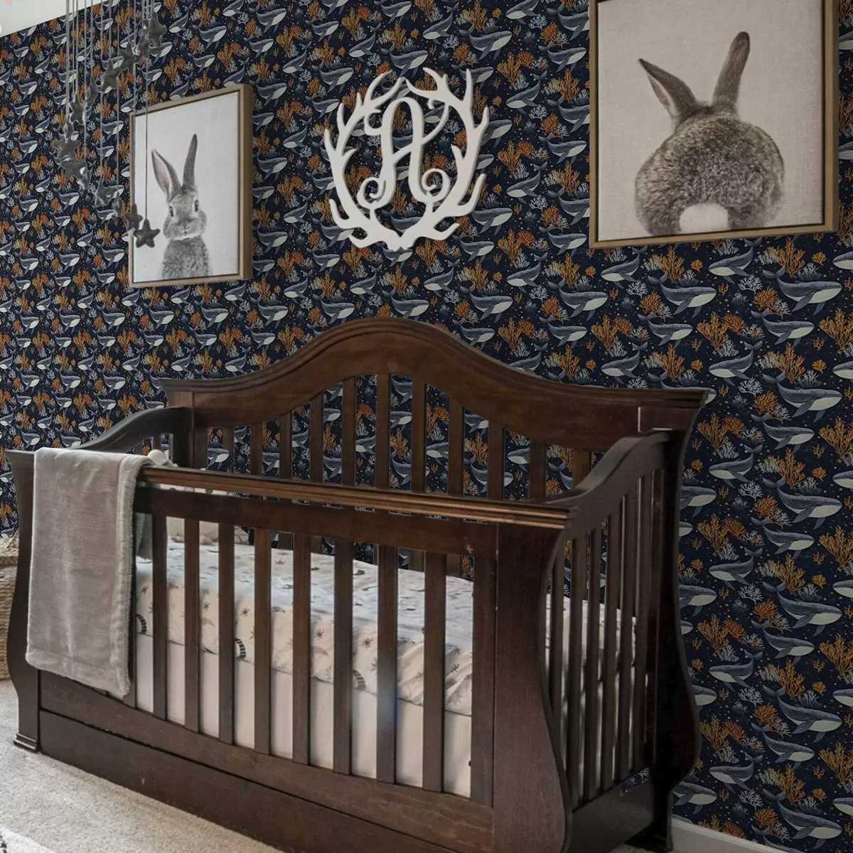 Tapeta Morské veľryby a koraly na tmavom pozadí Nr. a00116