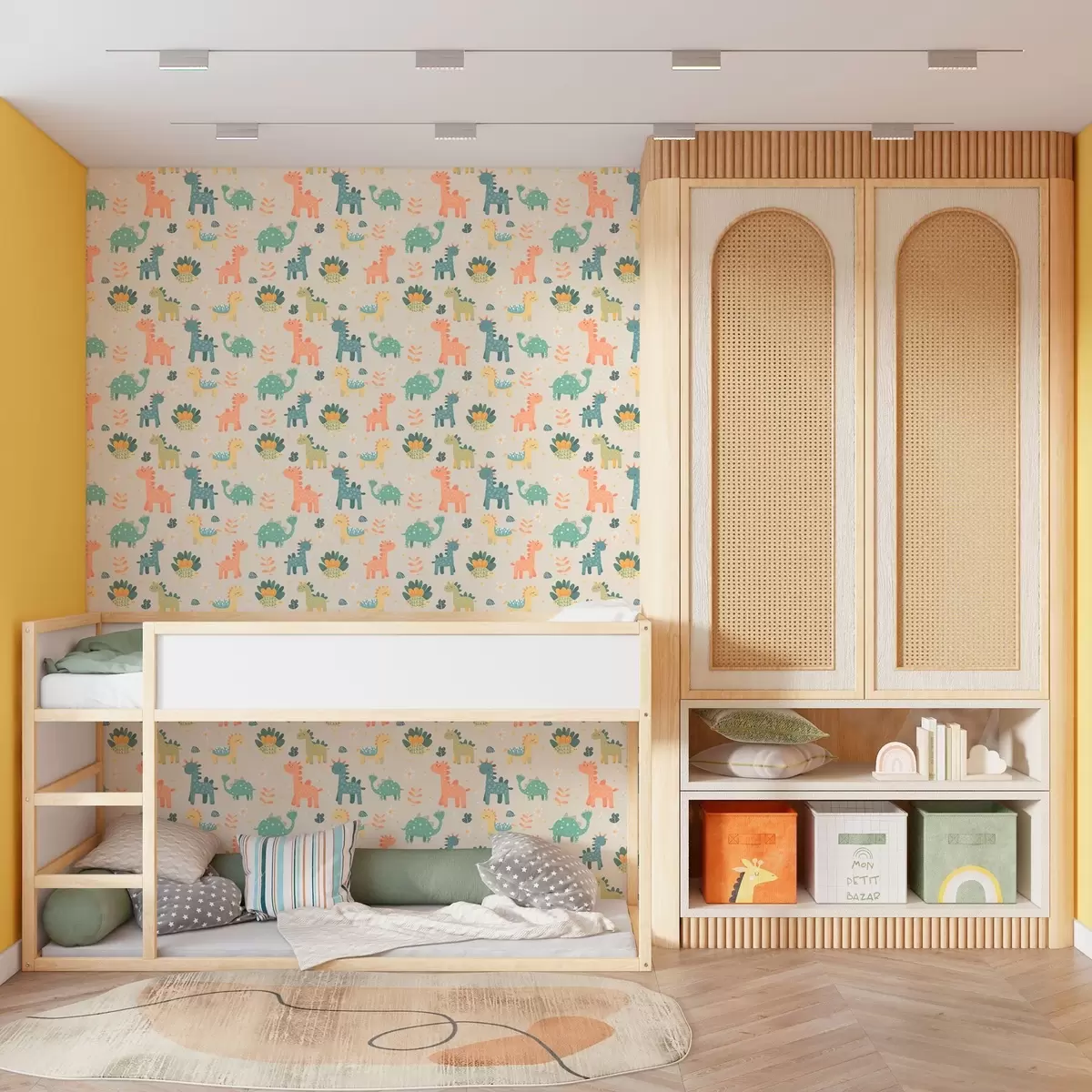 Tapeta Detské dinosaury v pastelových farbách na svetlom pozadí Nr. a00125