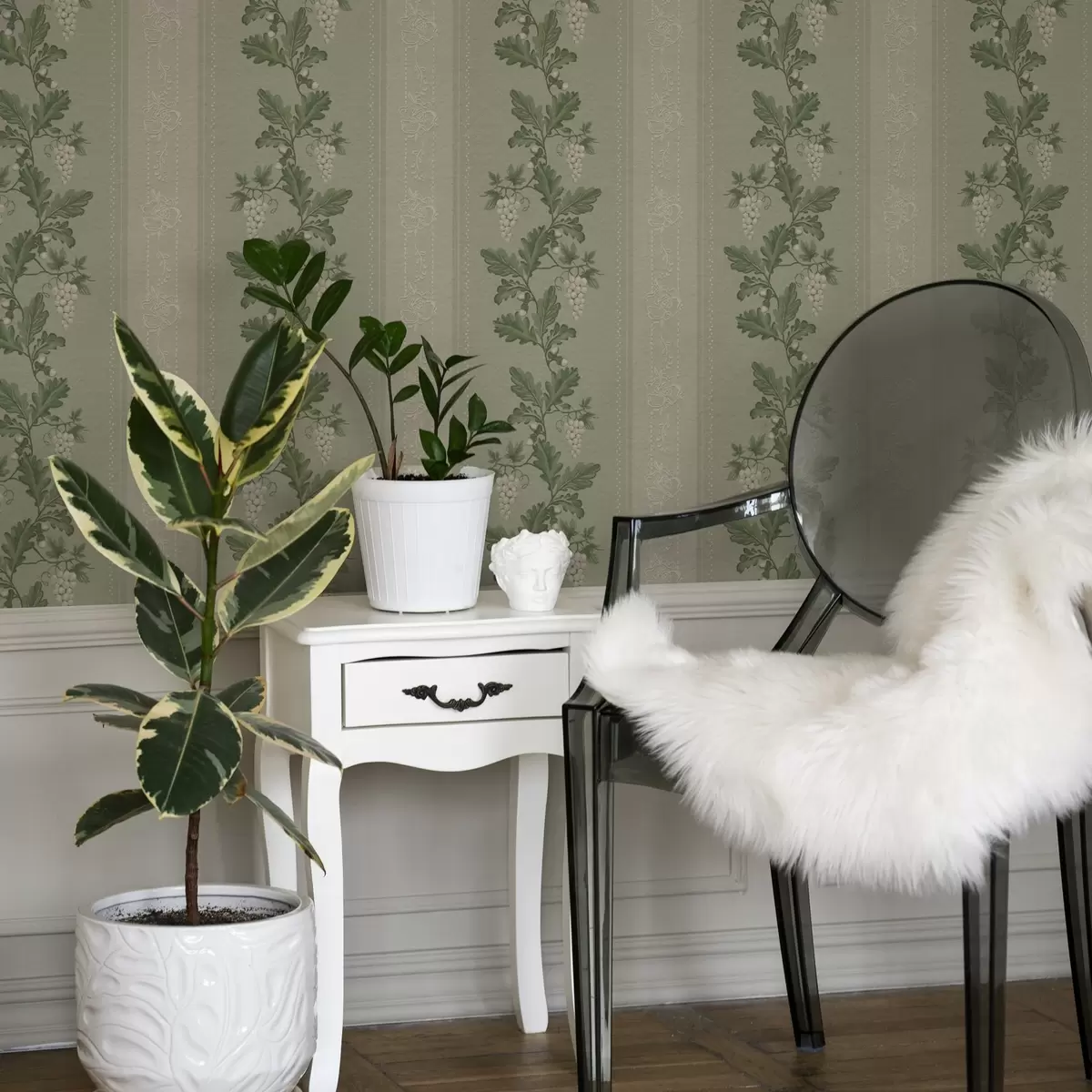 Tapeta Strapce hrozna a čipka, zelený klasický vzor Nr. a00223