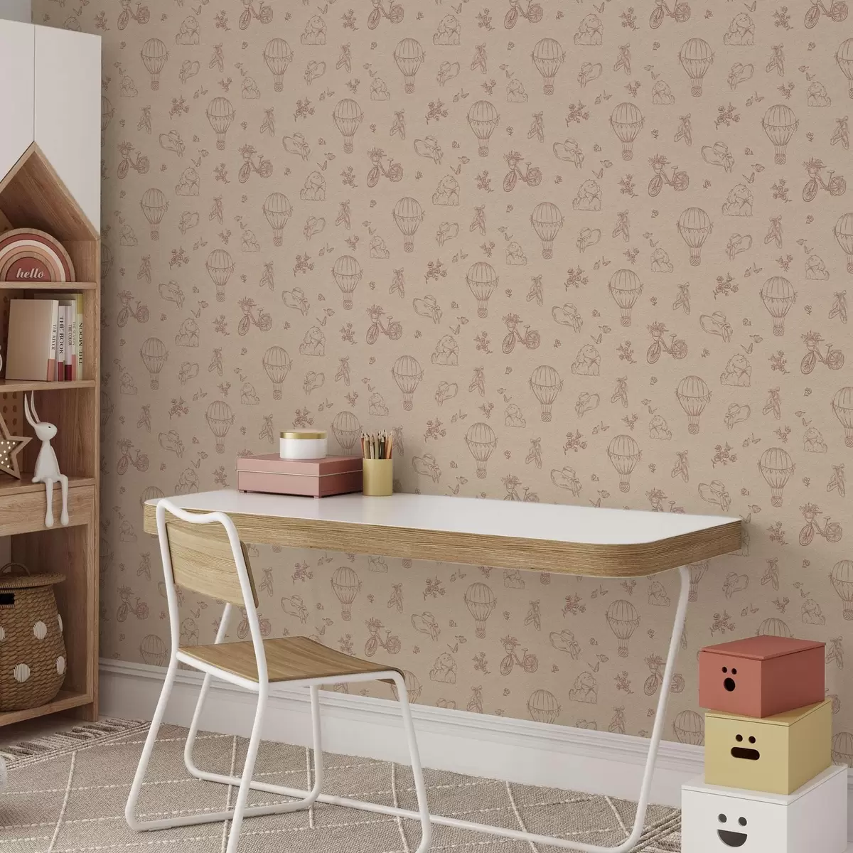 Tapeta Detský ružový vzor so psom, kvetmi a vzduchom Nr. a00279