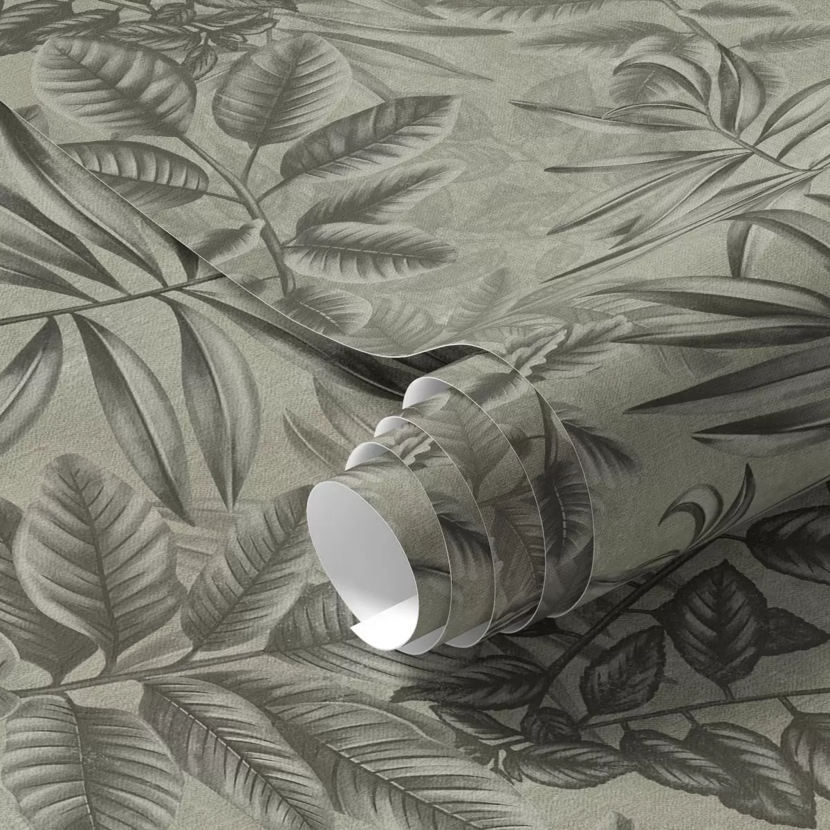Tapeta Sivé tropické listy rôznych tvarov na vintage pozadí Nr. a00297