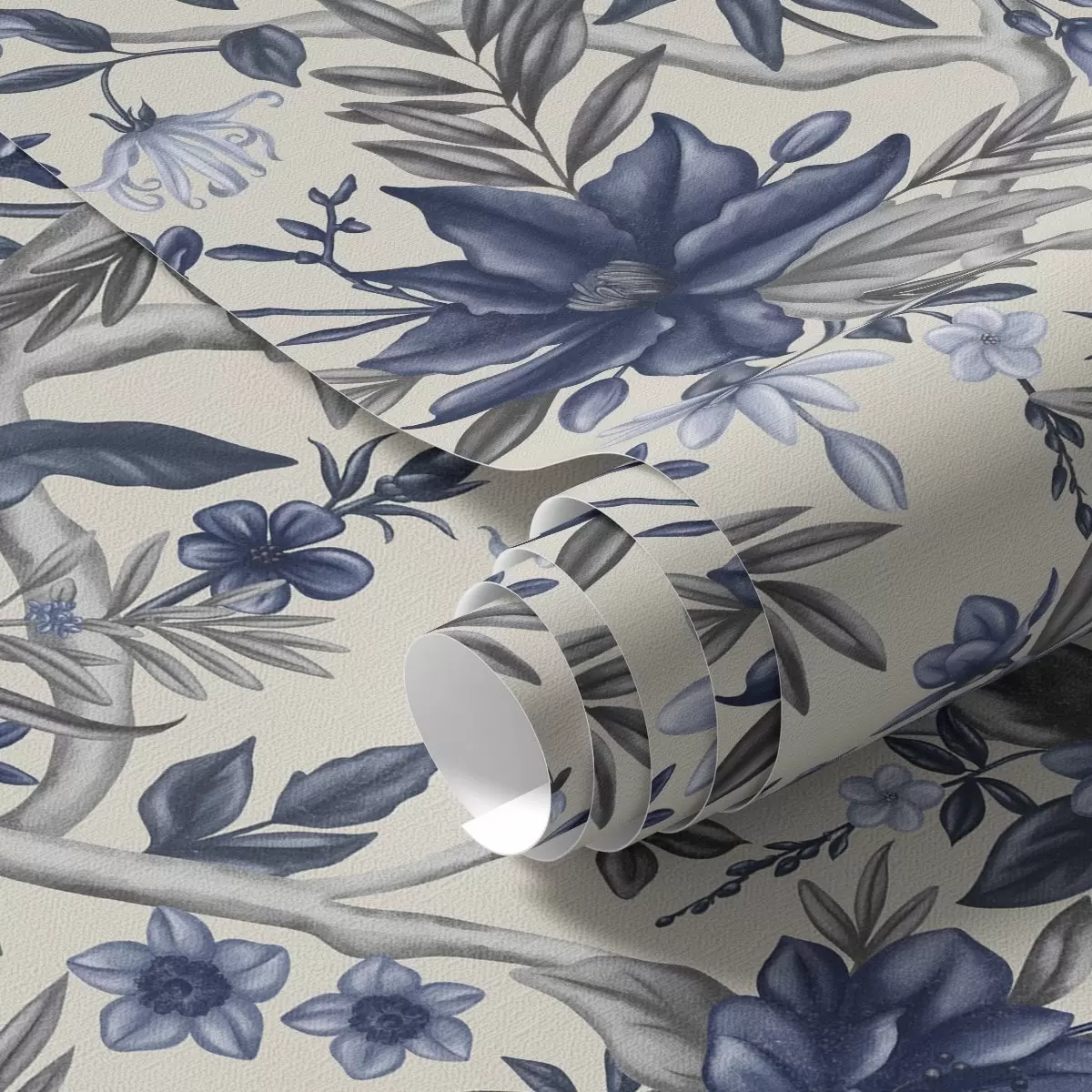 Tapeta Modré a sivé kvety na svetlom pozadí Nr. a00304