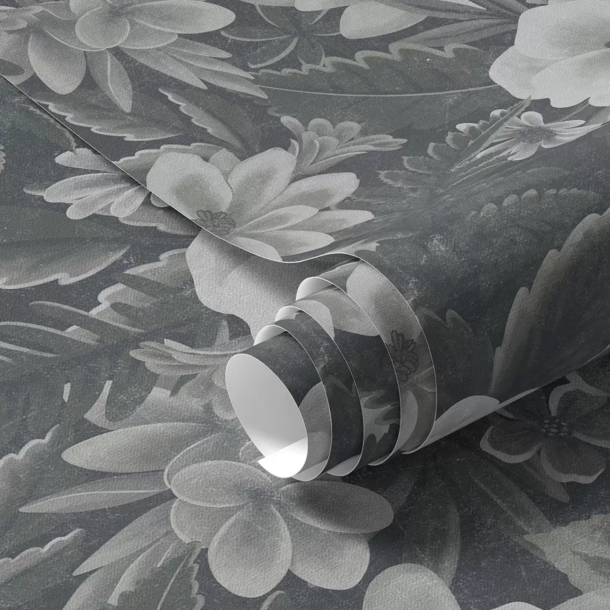 Tapeta Sivý a biely kvetinový vzor s retro efektom Nr. a00307