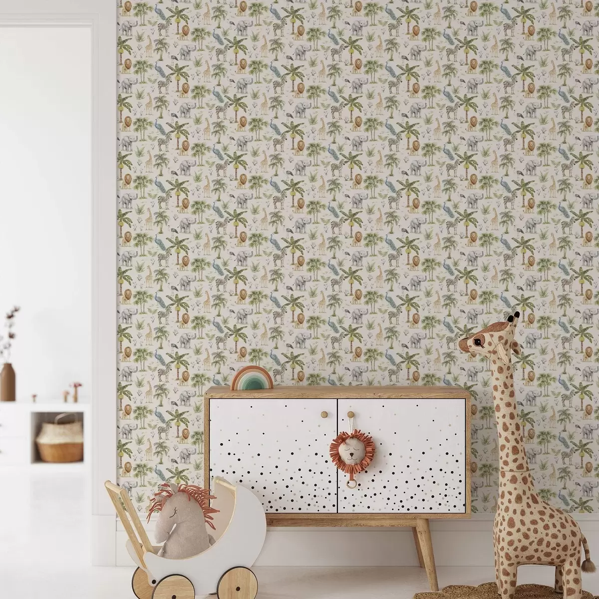Tapeta Africké zvieratá medzi palmami a exotickými rastlinami Nr. a00321