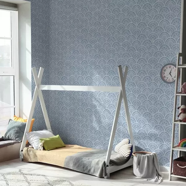 Tapeta Modrý ornament s oblúkmi a vzormi Nr. a00332