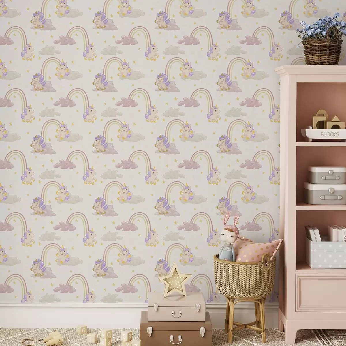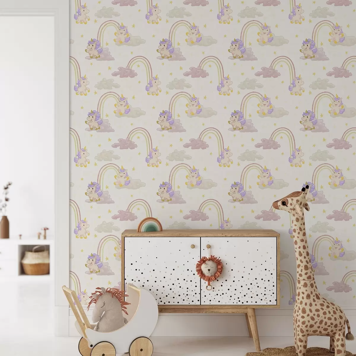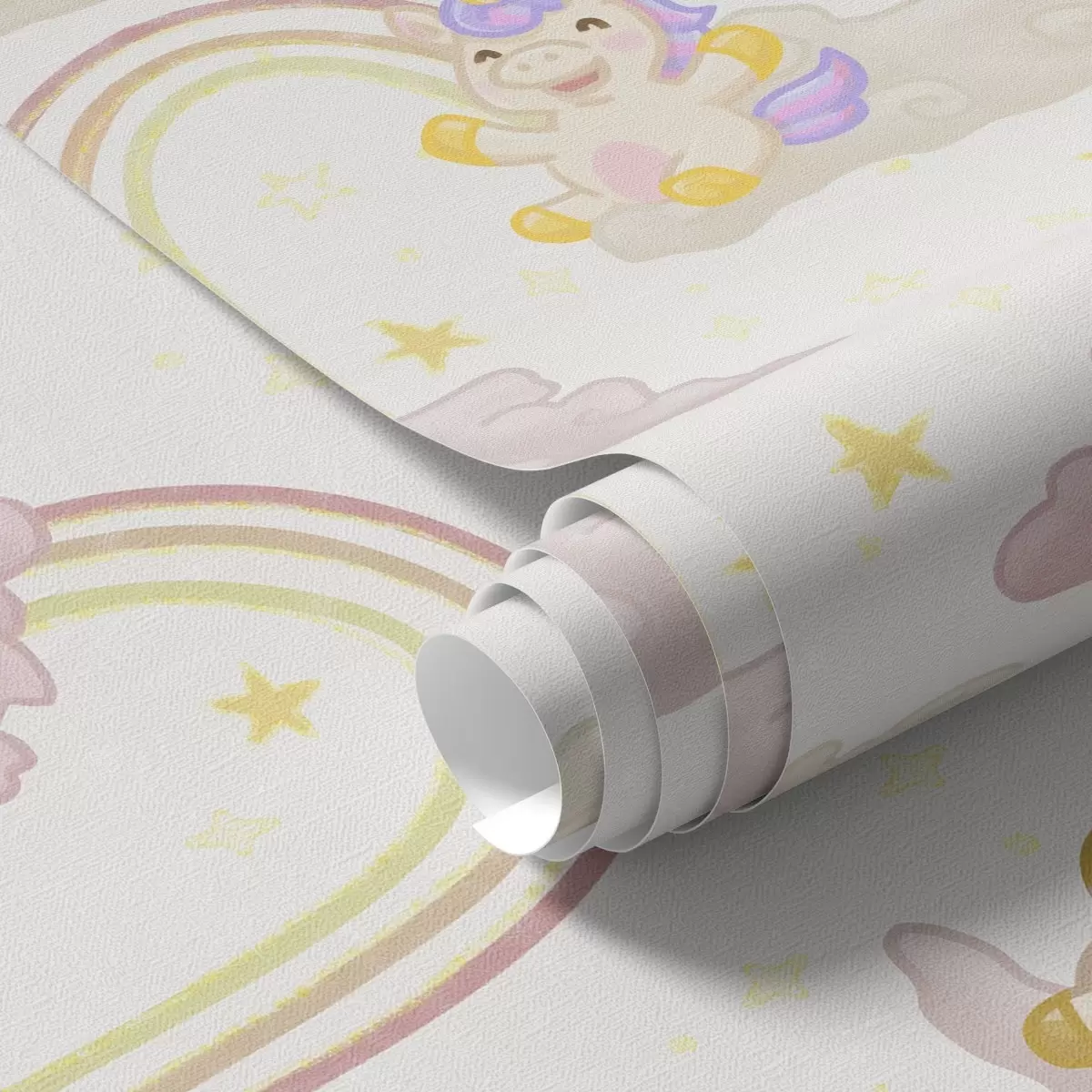Tapeta Roztomilý jednorožec s dúhou a hviezdami Nr. a00339