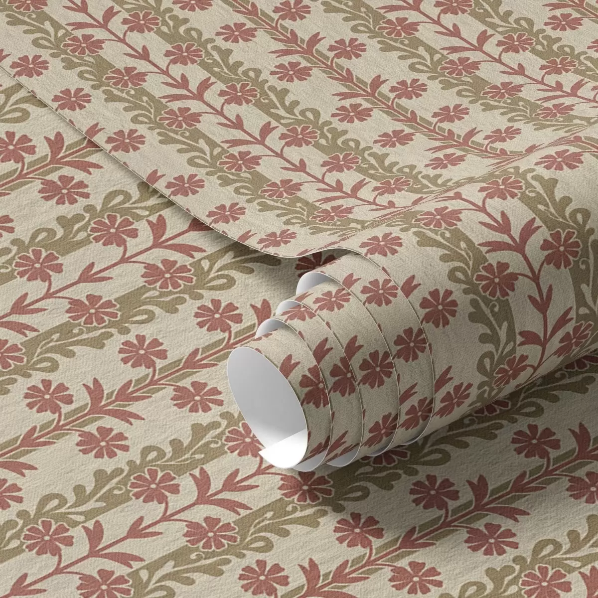 Tapeta Pruhovaný ornament s červenými kvetmi Nr. a00341