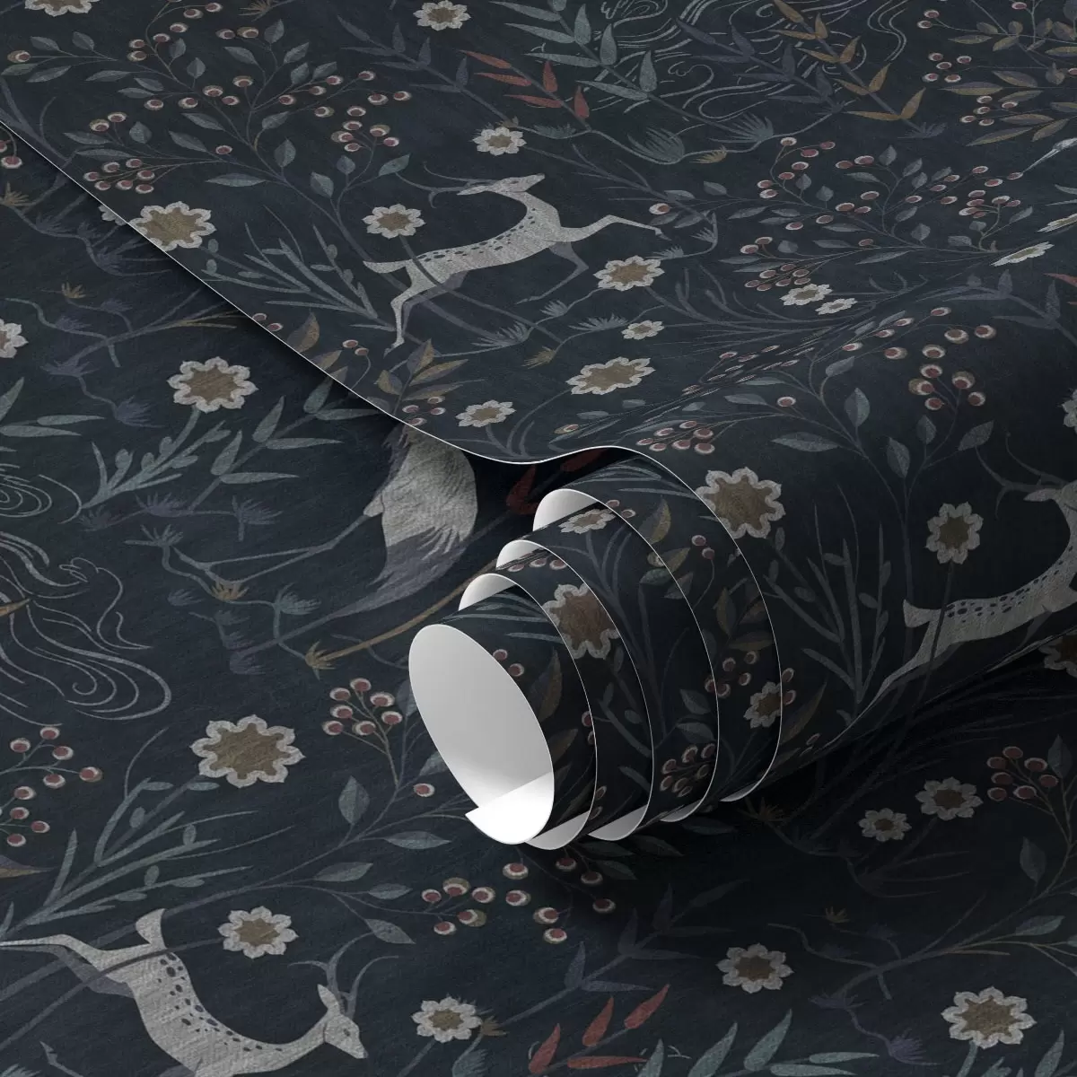 Tapeta Tmavé pozadie s bielymi vtákmi a jeleňom Nr. a00363
