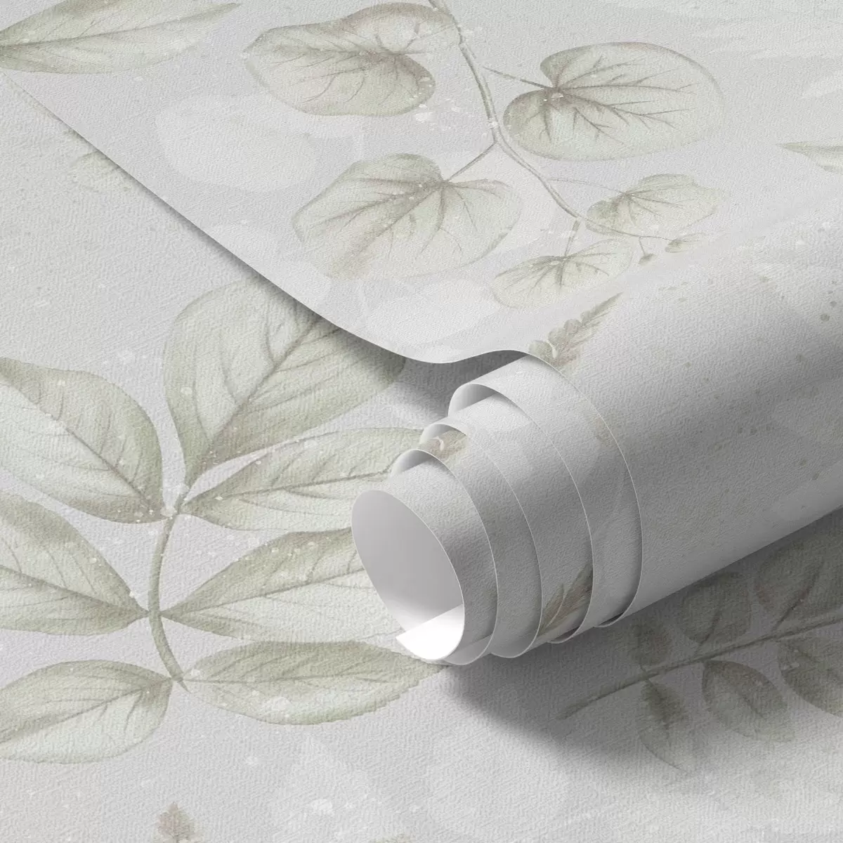 Tapeta Svetlé akvarelové listy s efektom postriekania na sivom pozadí Nr. a00446