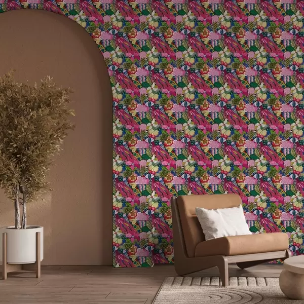 Tapeta Abstraktný pop-art s kvetmi, bobuľami a vzormi Nr. a00471