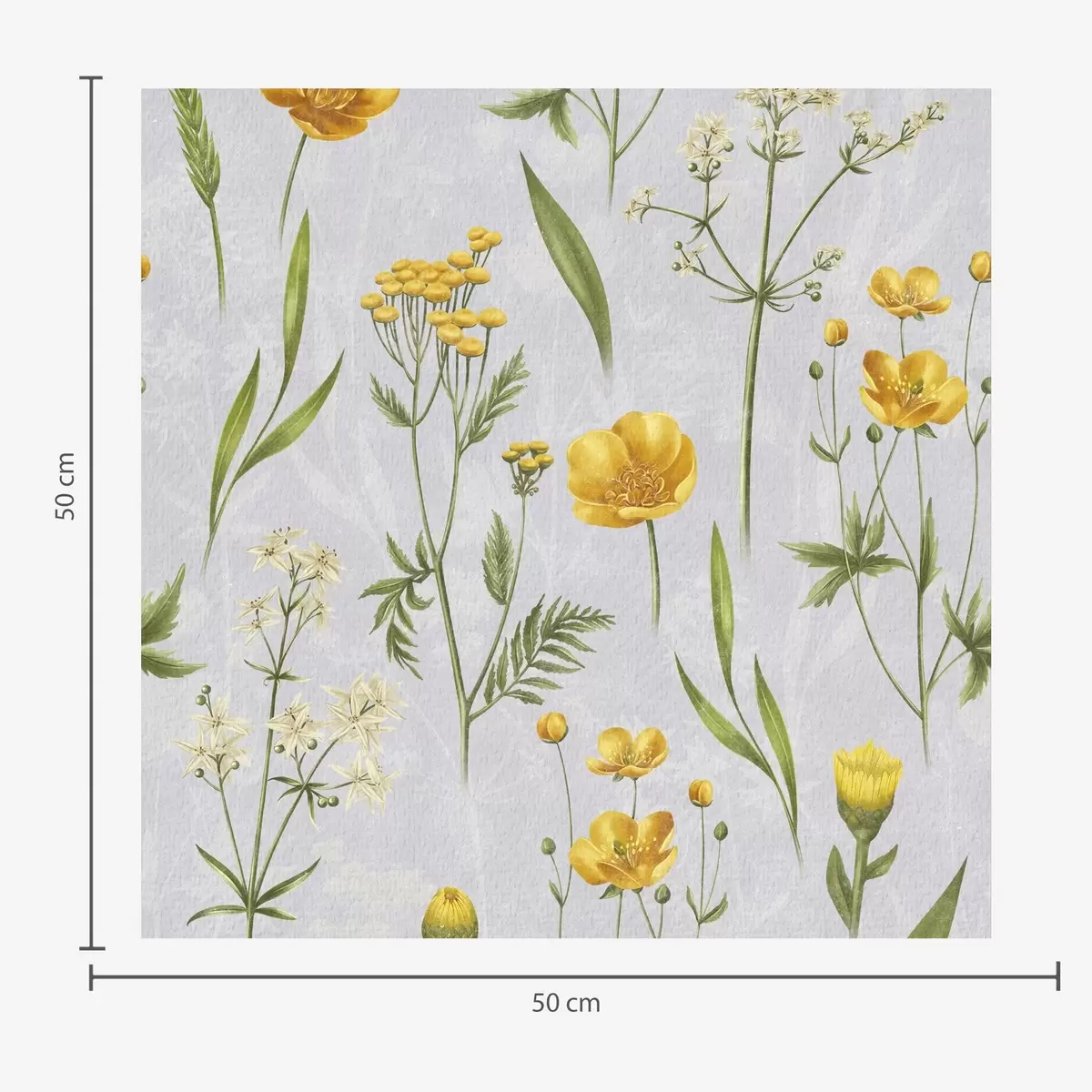 Tapeta Žlté kvety a zeleň na svetlosivom pozadí Nr. a00472