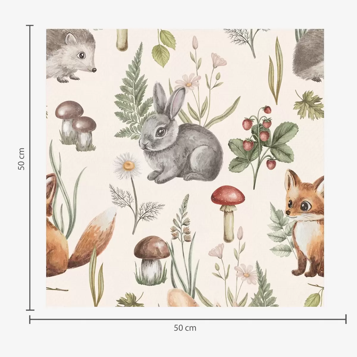 Tapeta Lesné zvieratá, huby a rastliny v rozprávkovom štýle Nr. a00477