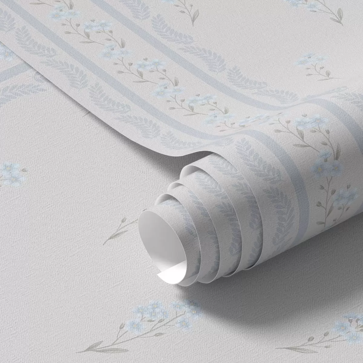 Tapeta Biele pozadie s modrými kvetmi a ozdobným pruhom Nr. a00484v1