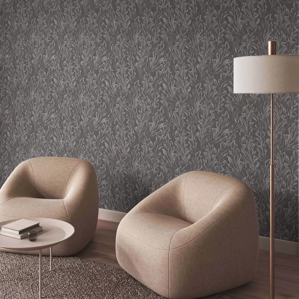 Tapeta Plynúce vlny listov na grafitovom pozadí, vysoký kontrast Nr. a00495v1