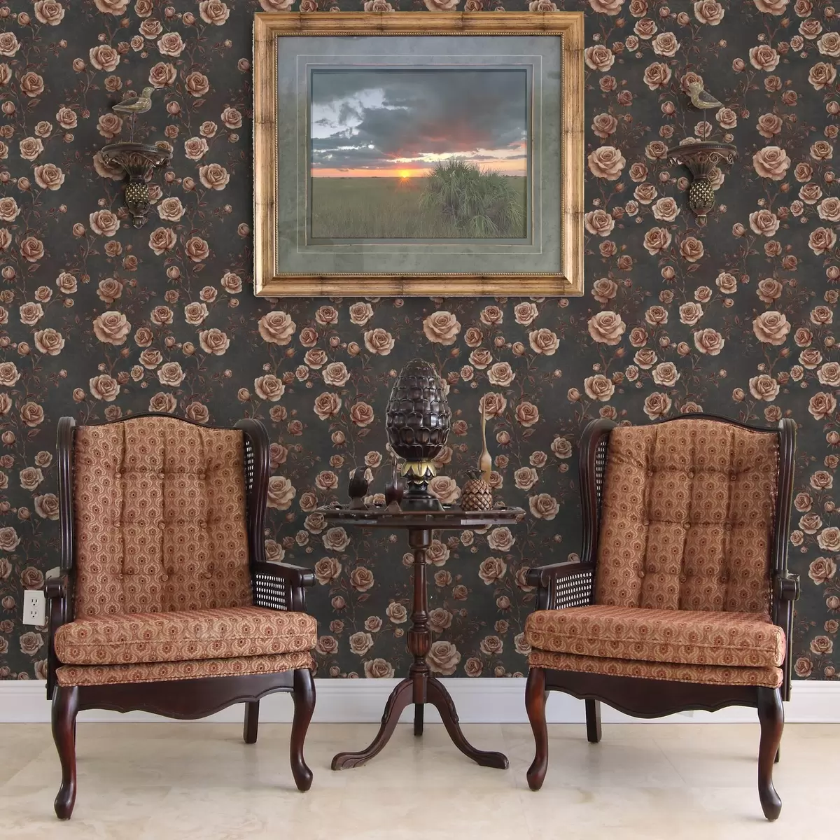 Tapeta Vintage ruže na grafitovom pozadí, terakotová paleta Nr. a00497v1
