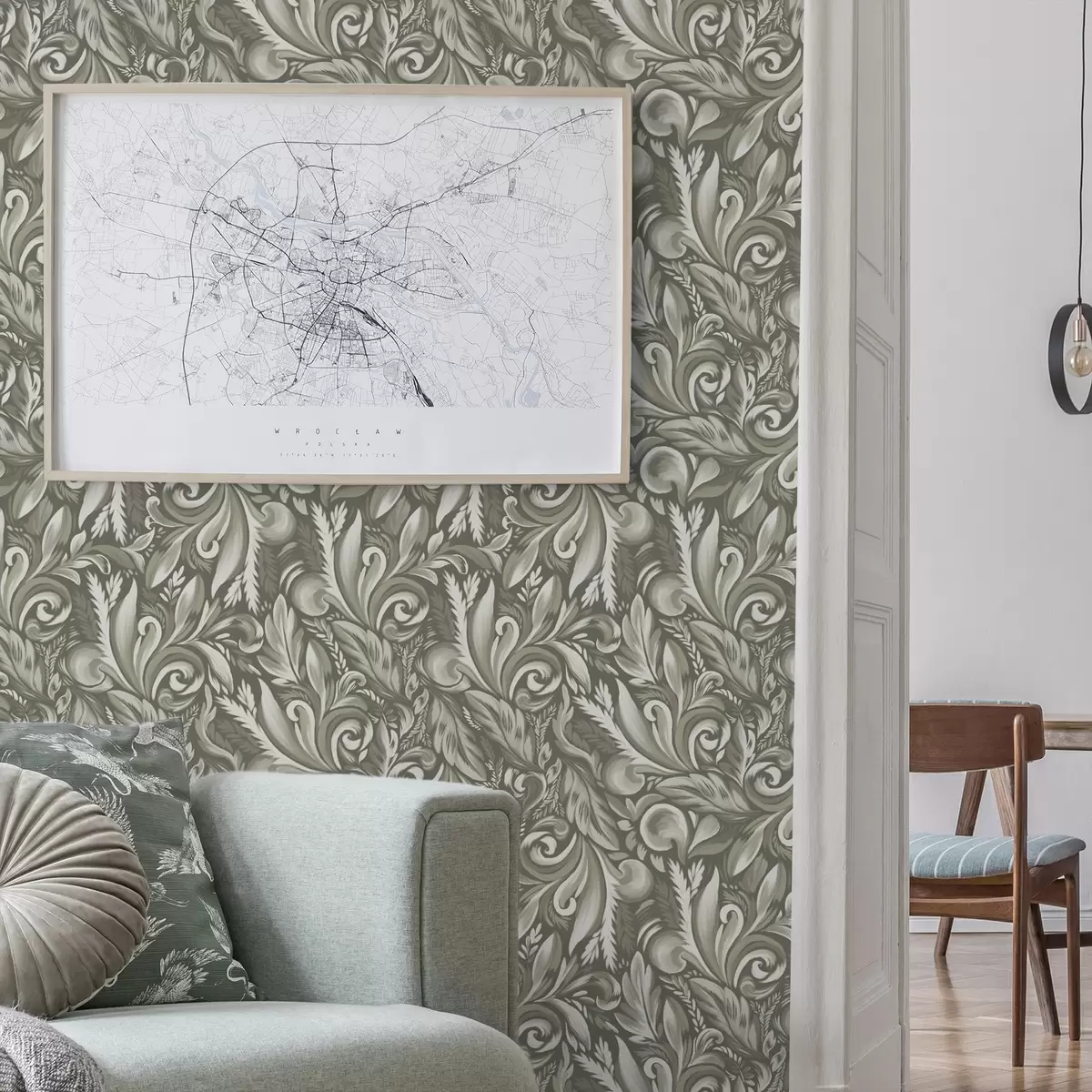 Tapeta Akantové voluty v olivovo-béžovej farebnej palete Nr. a00501
