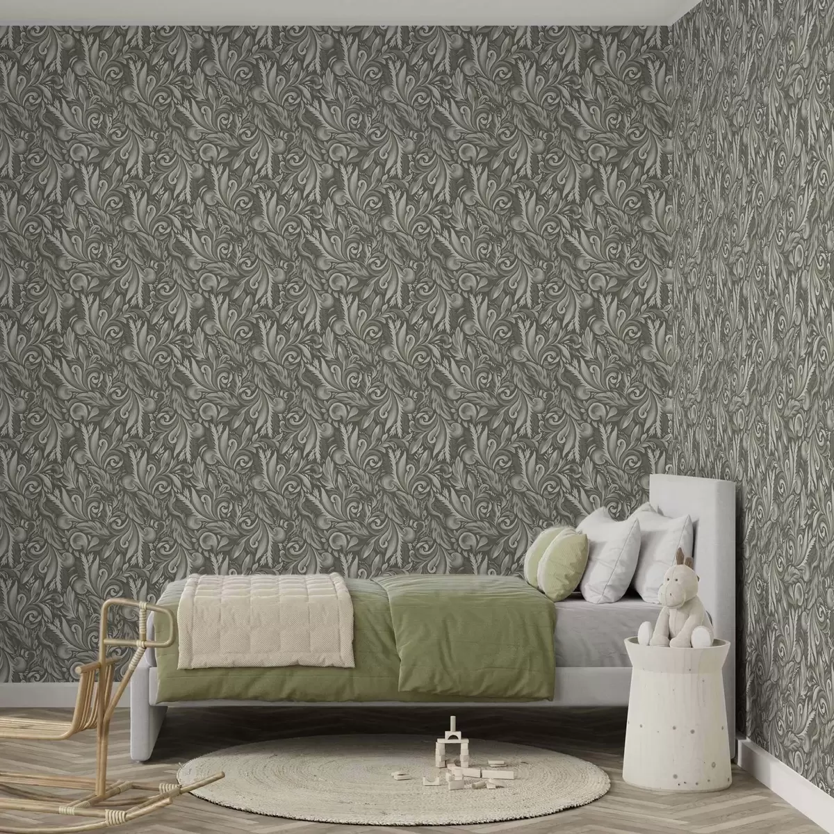 Tapeta Akantové voluty v olivovo-béžovej farebnej palete Nr. a00501