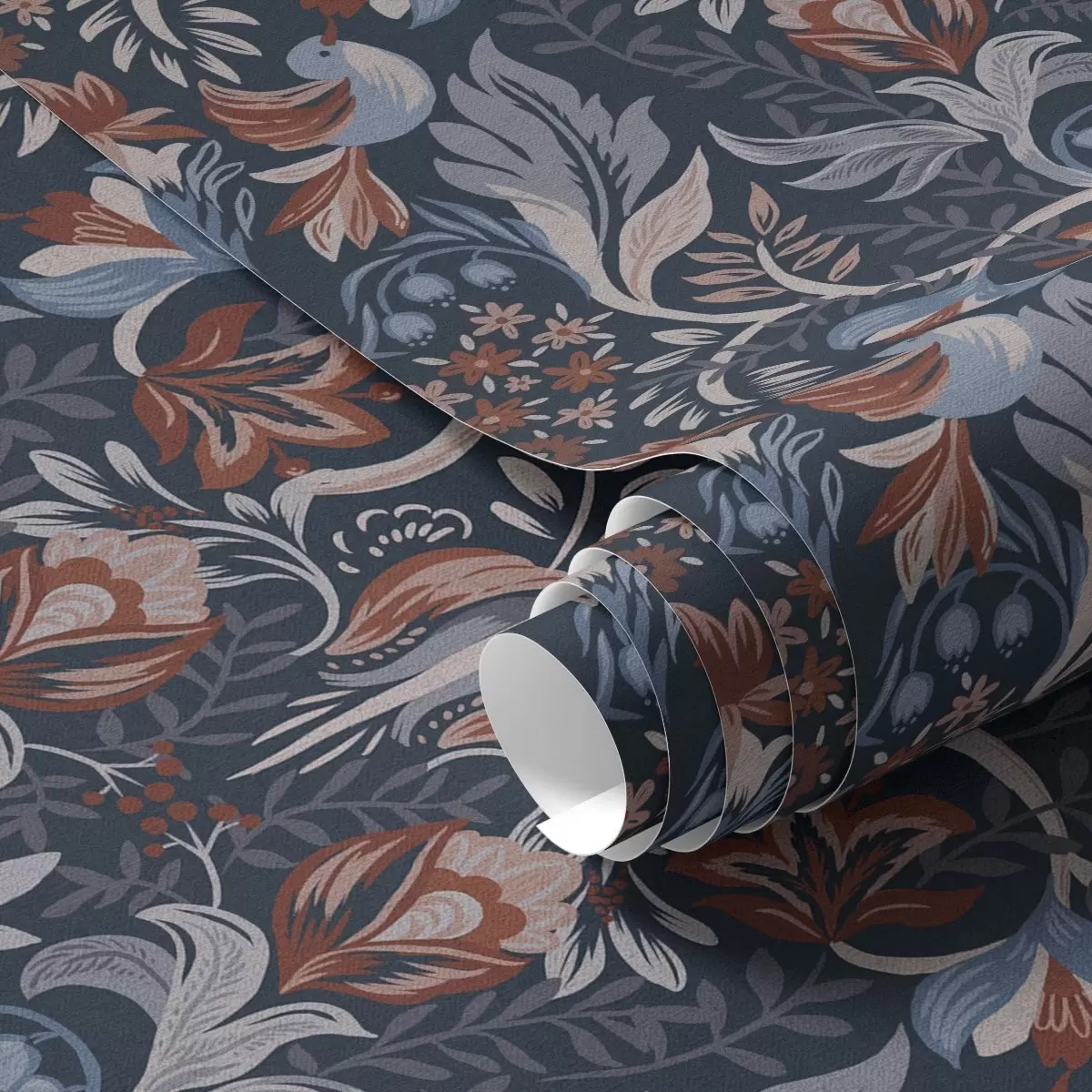 Tapeta Ľudový ornament s vtákmi, tmavomodrá farba Nr. a00502v1