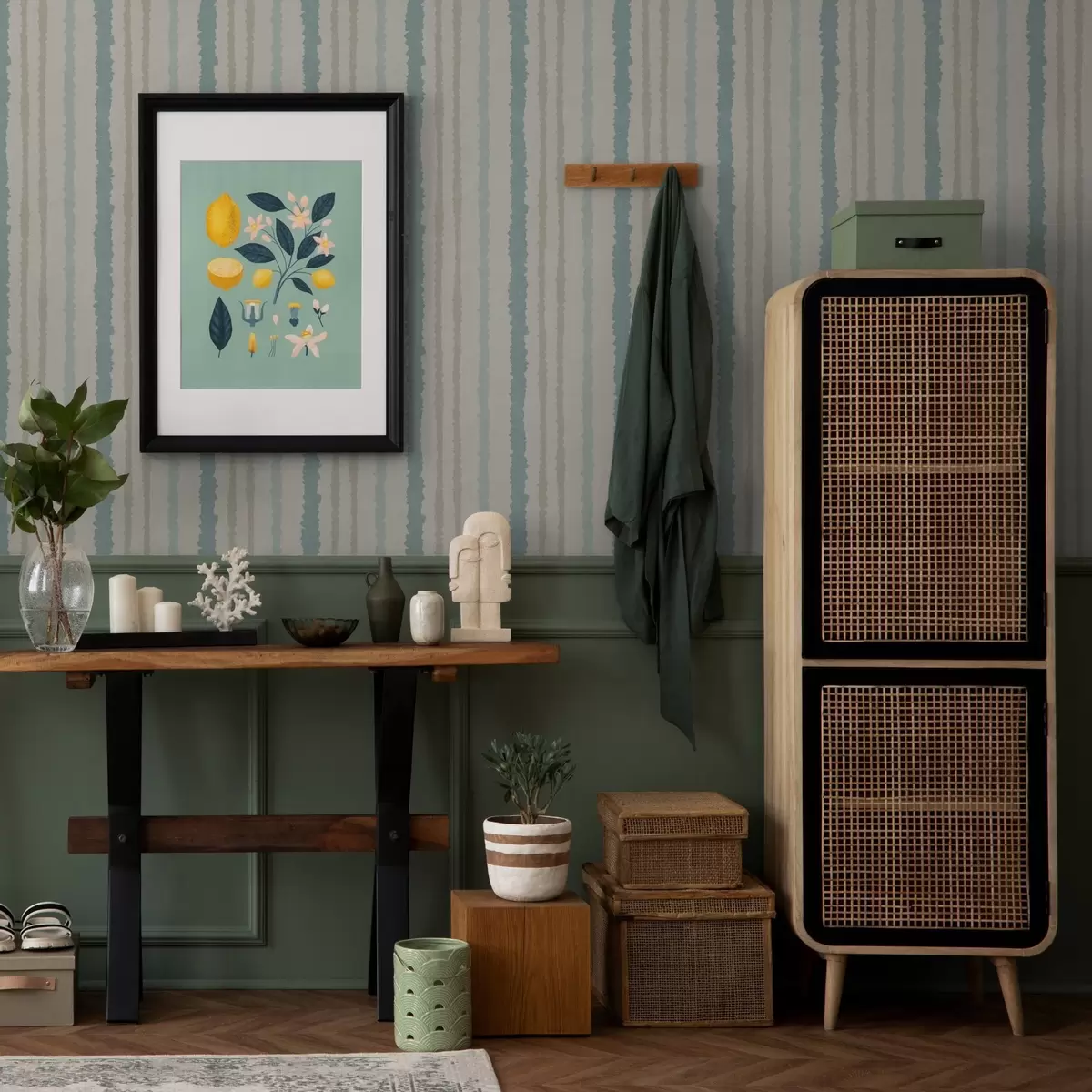 Tapeta Tyrkysovo-béžové pruhy s ručne maľovaným efektom Nr. a00510v1
