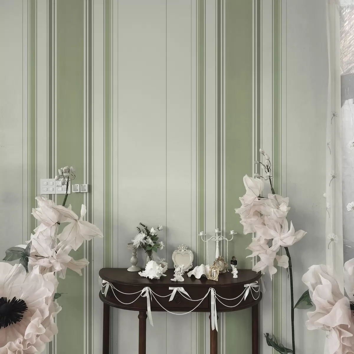 Tapeta Krémové pozadie so širokým zeleným stredovým pruhom Nr. a00519