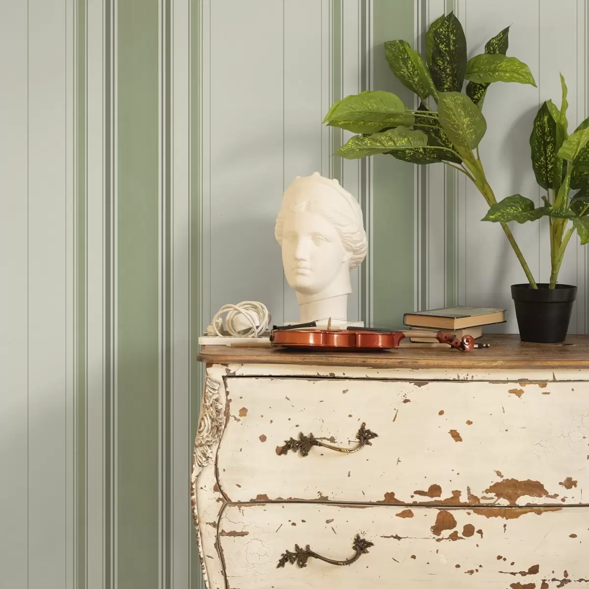 Tapeta Krémové pozadie so širokým zeleným stredovým pruhom Nr. a00519