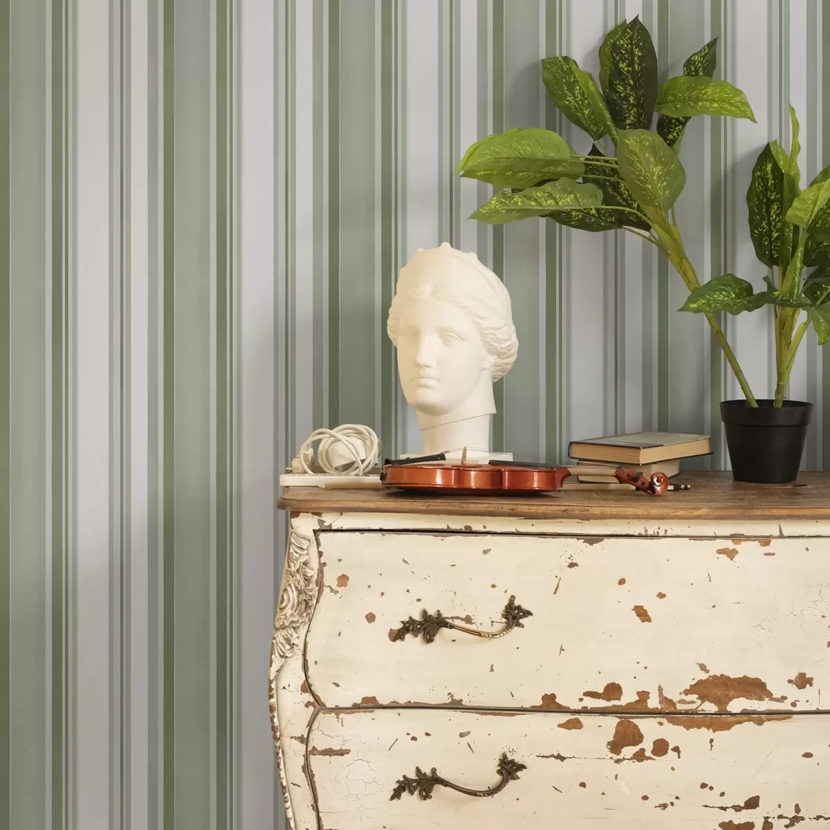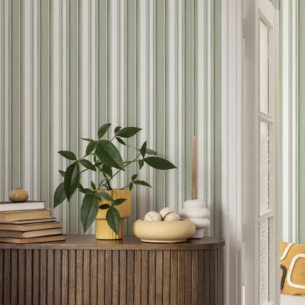 Tapeta Zelené pruhy s bielymi intervalmi a tenkými čiarami Nr. a00526