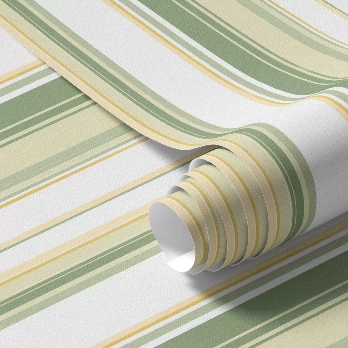 Tapeta Zelené a béžové pruhy so žltými zvýrazňujúcimi linkami Nr. a00531