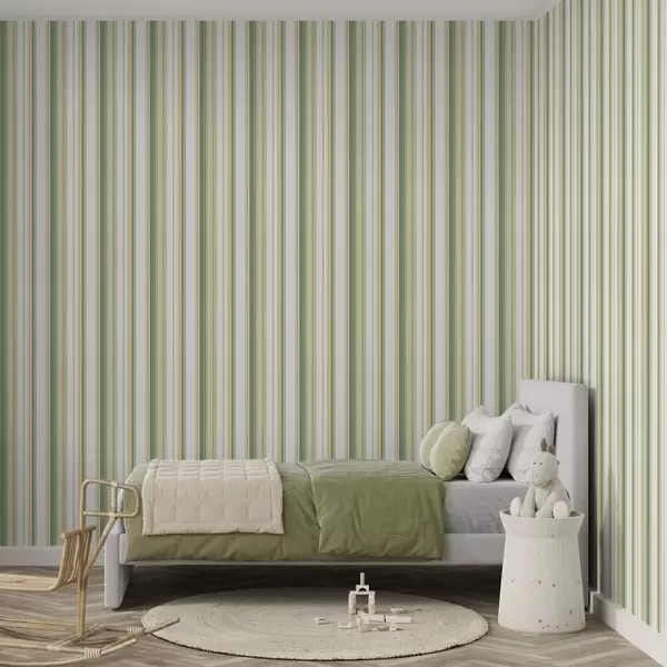 Tapeta Zelené a béžové pruhy so žltými zvýrazňujúcimi linkami Nr. a00531