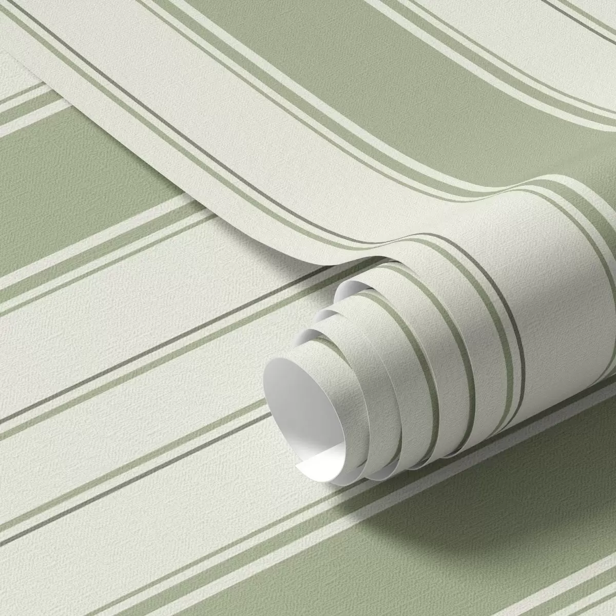 Tapeta Krémové pozadie s rovnomernými zelenými zvislými pruhmi Nr. a00560