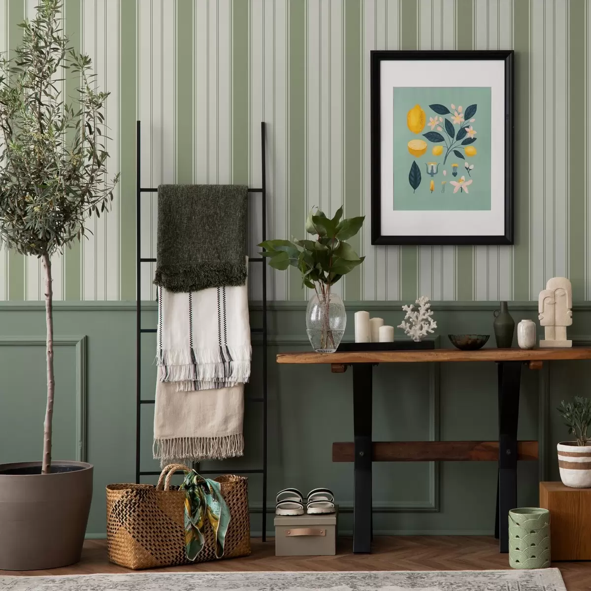 Tapeta Krémové pozadie s rovnomernými zelenými zvislými pruhmi Nr. a00560