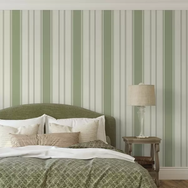Tapeta Krémové pozadie so širokými svetlozelenými pruhmi Nr. a00561