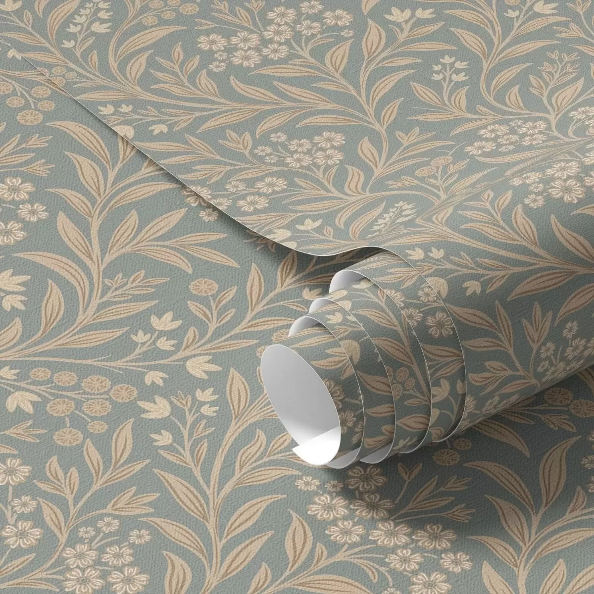 Tapeta Štýl Morris: béžové vetvy na šedo-zelenom pozadí Nr. a00569