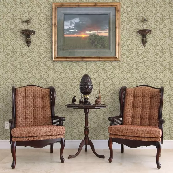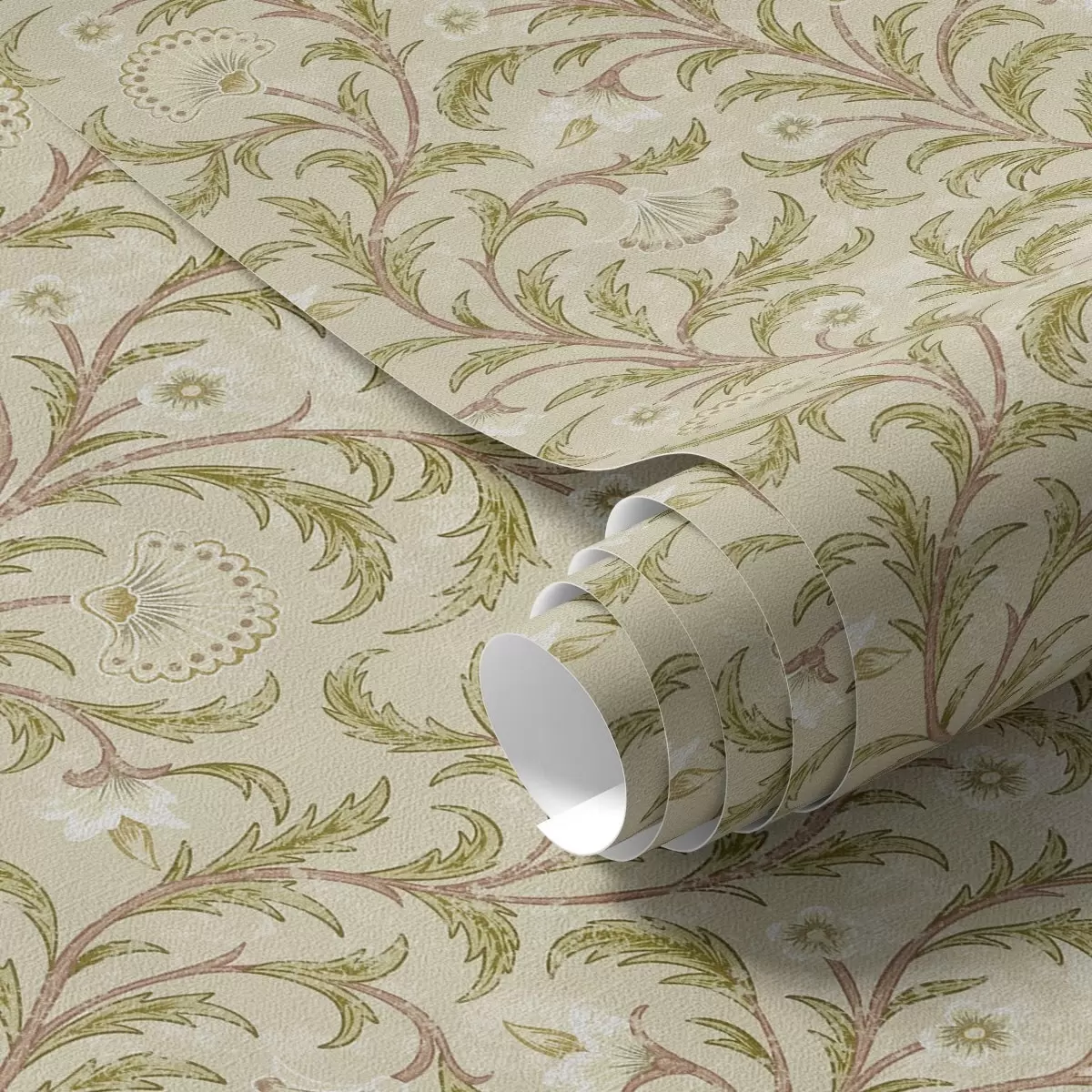 Tapeta Vintage ornament so špirálami a kvetmi, béžová a olivová Nr. a00574