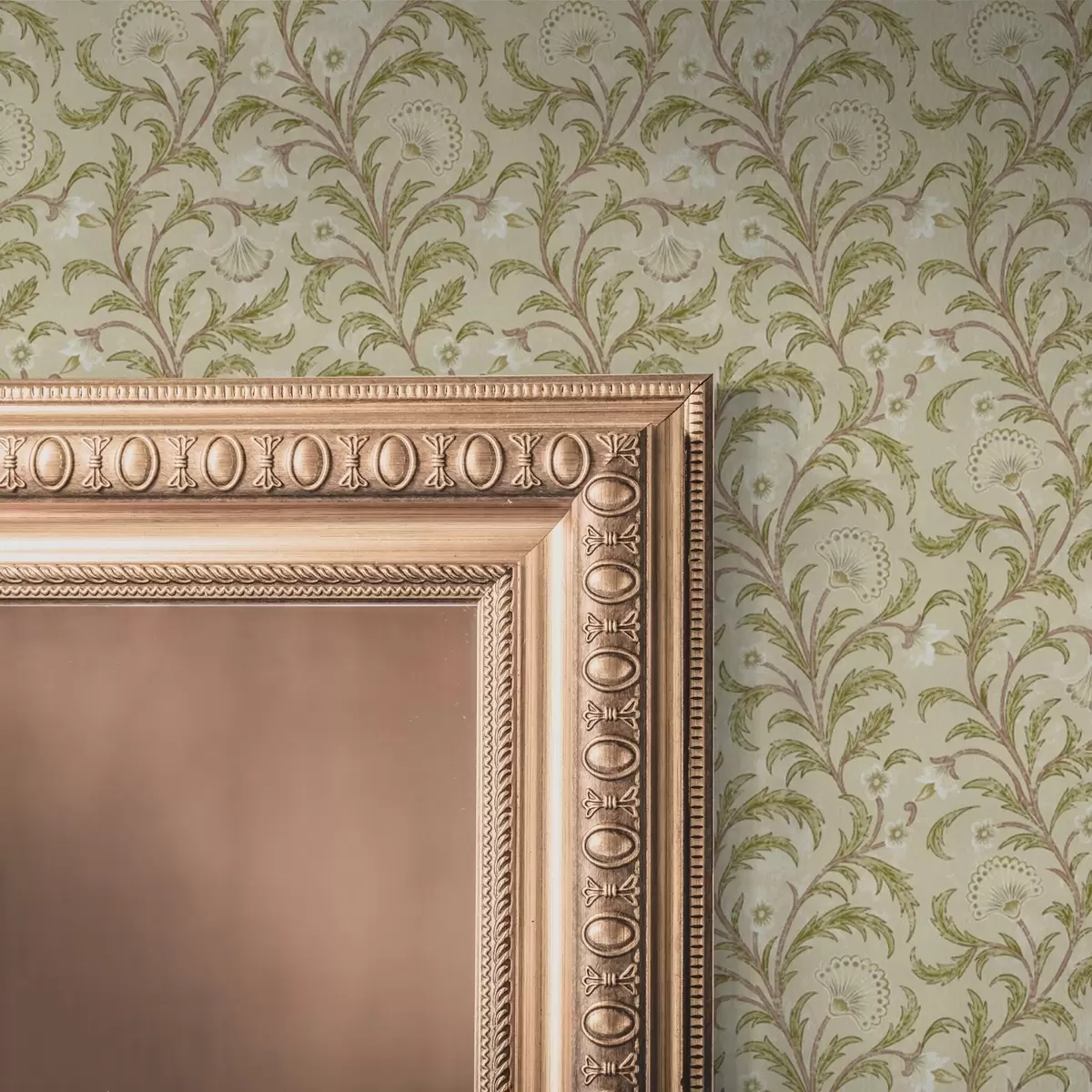 Tapeta Vintage ornament so špirálami a kvetmi, béžová a olivová Nr. a00574