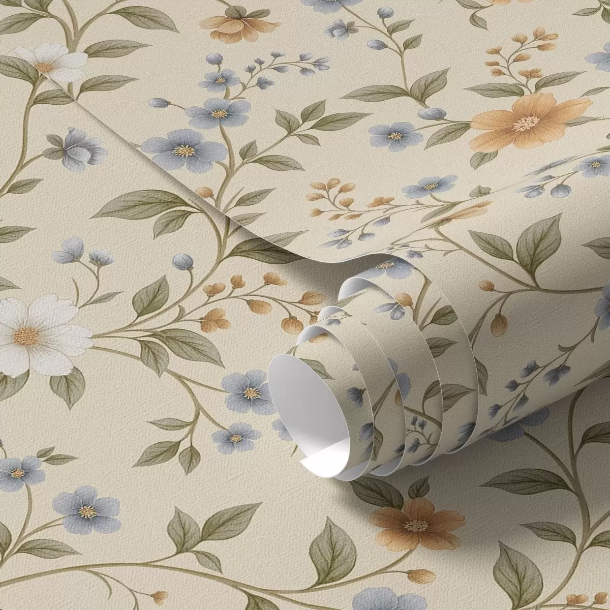 Tapeta Kvetinové vetvičky s modrými a broskyňovými kvetmi Nr. a00575