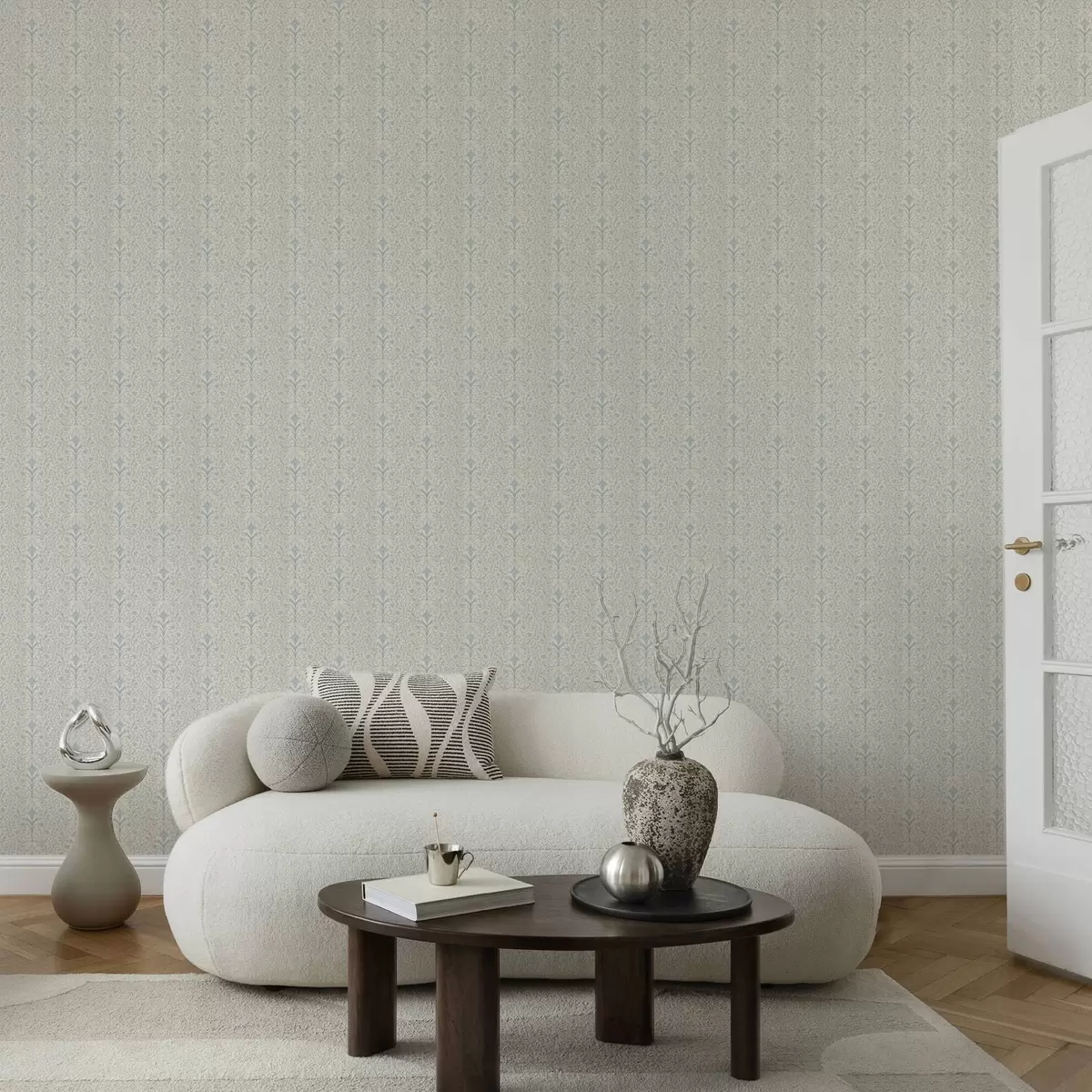 Tapety Modrý damašek so špirálami na smotanovom pozadí a00578