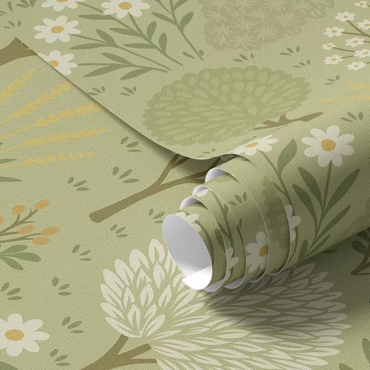Tapeta Detská zelená záhrada: stromy, kvety a pšenica Nr. a00586