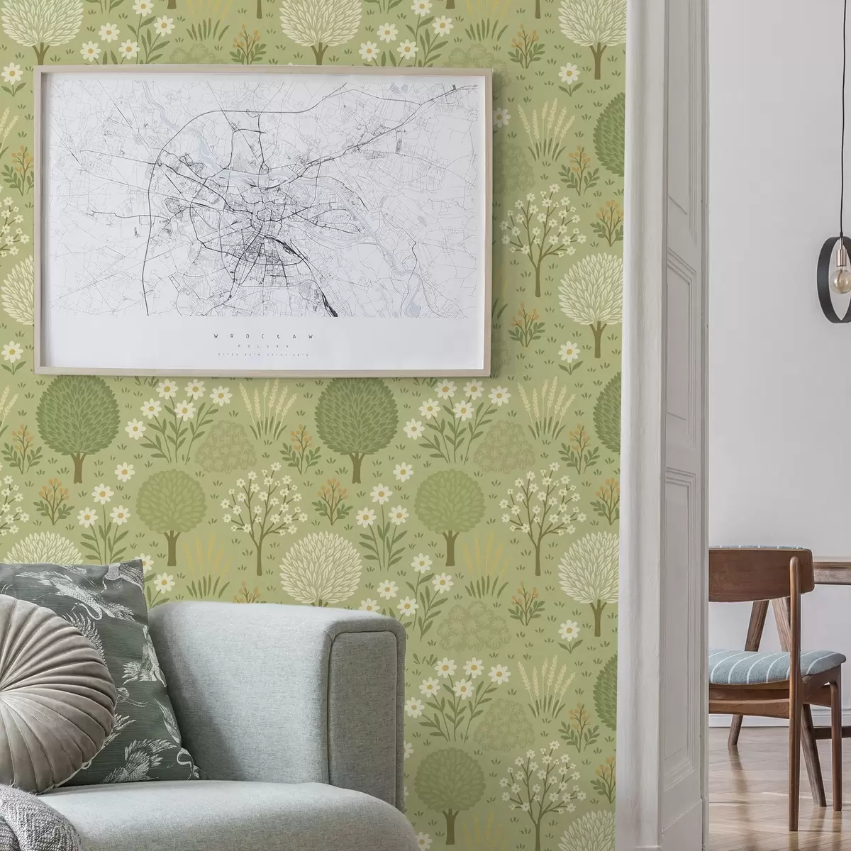 Tapeta Detská zelená záhrada: stromy, kvety a pšenica Nr. a00586