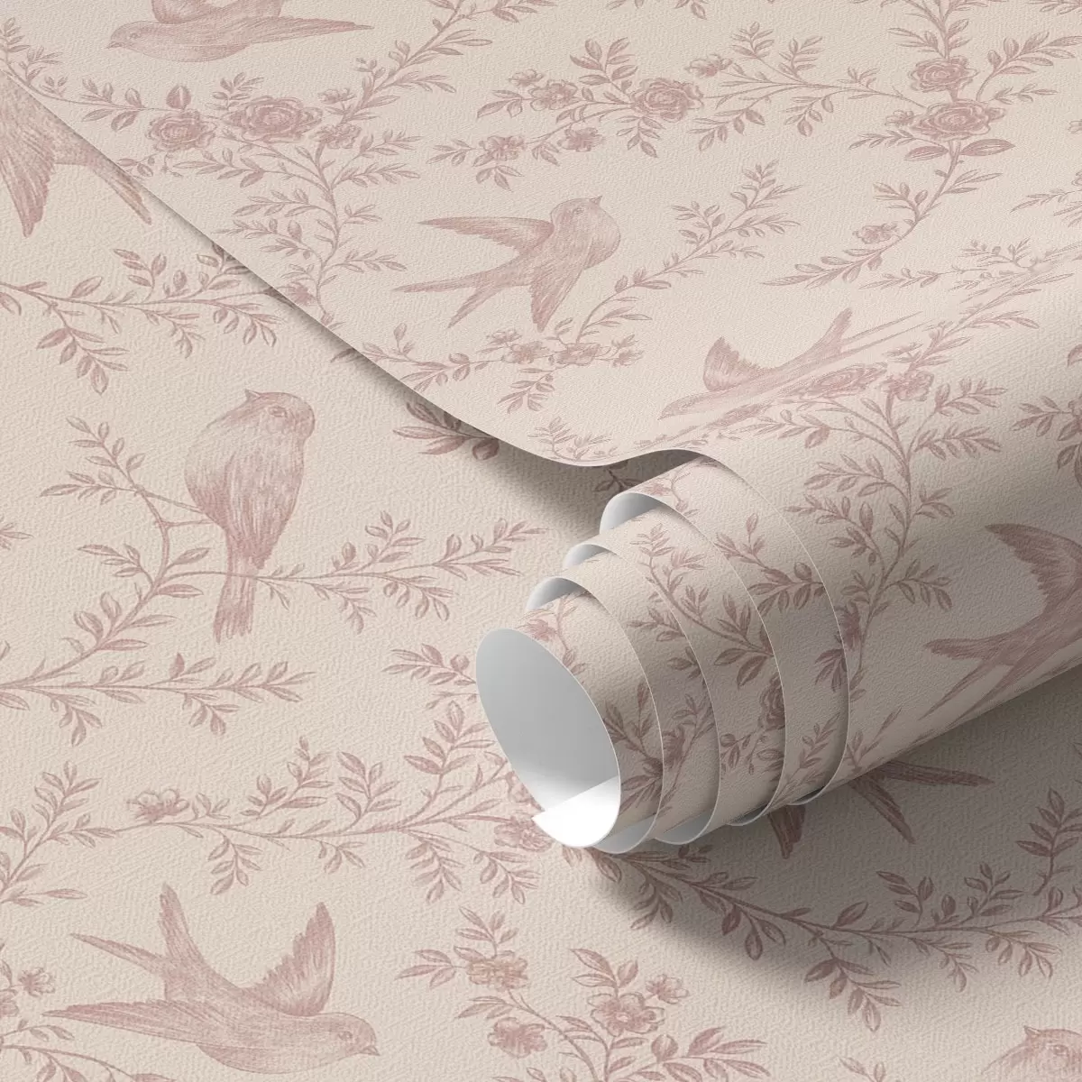 Tapeta Vtáky a ruže, vintage vzor na ružovom pozadí Nr. a00587