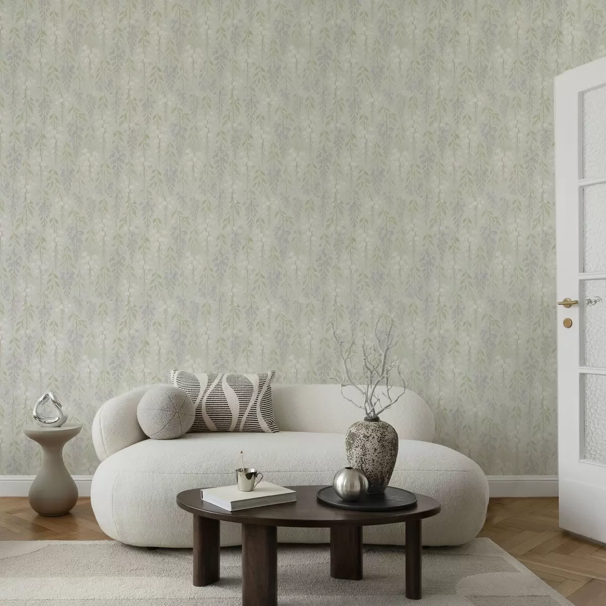 Tapeta Visiaca levanduľová vistéria na mätovo zelenom pozadí Nr. a00593