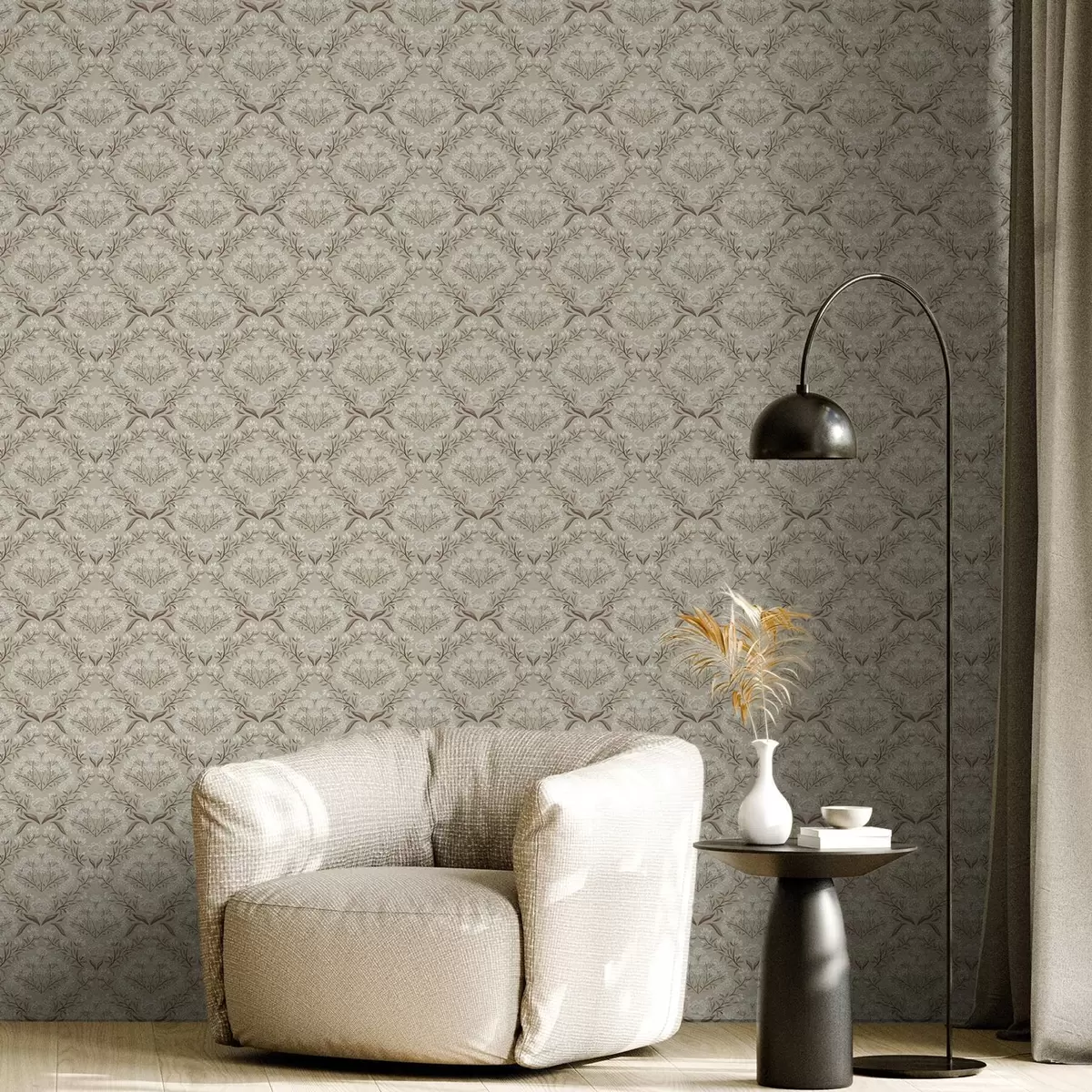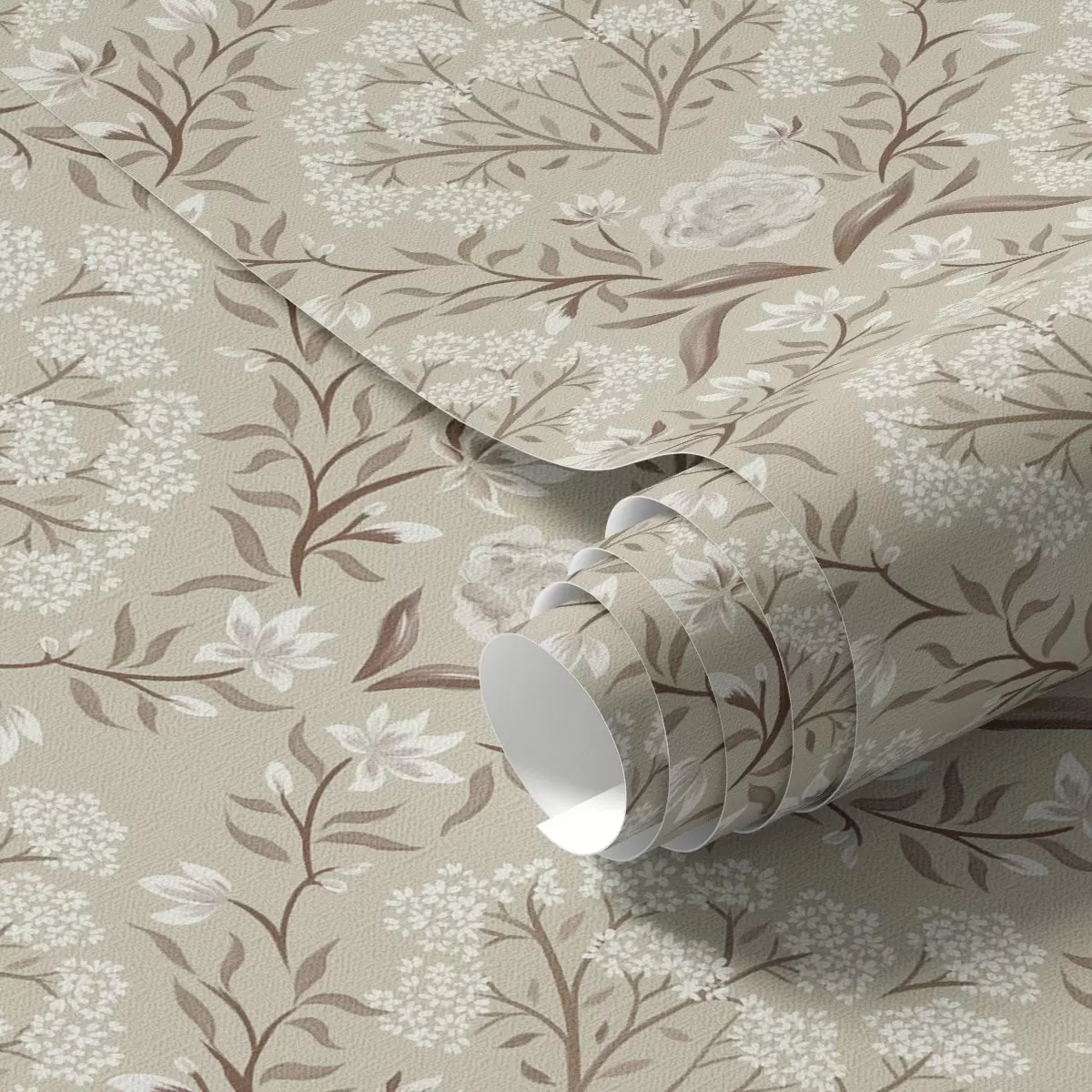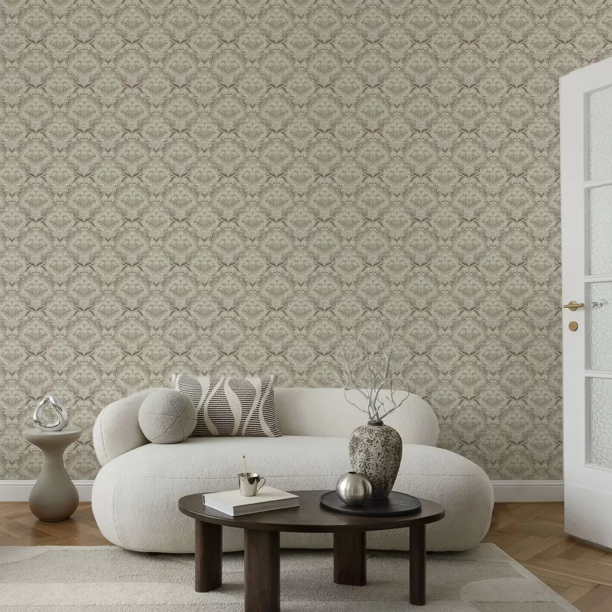 Tapeta Béžový damašek: pivonky, snežienky a čipkované zhluky Nr. a00603v1