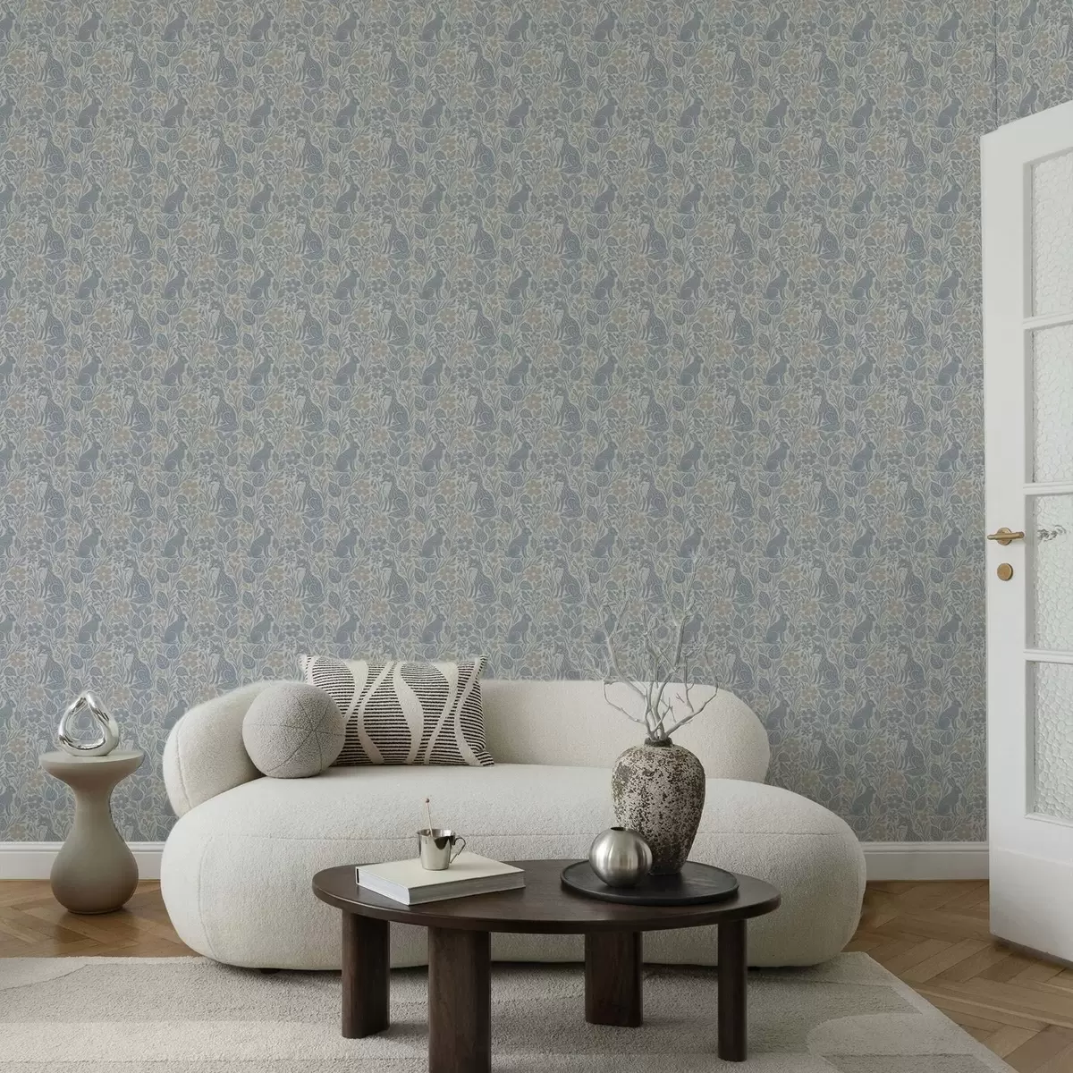 Tapeta Lesné zvieratá a kvety: líška a zajac v modrých odtieňoch Nr. a00613