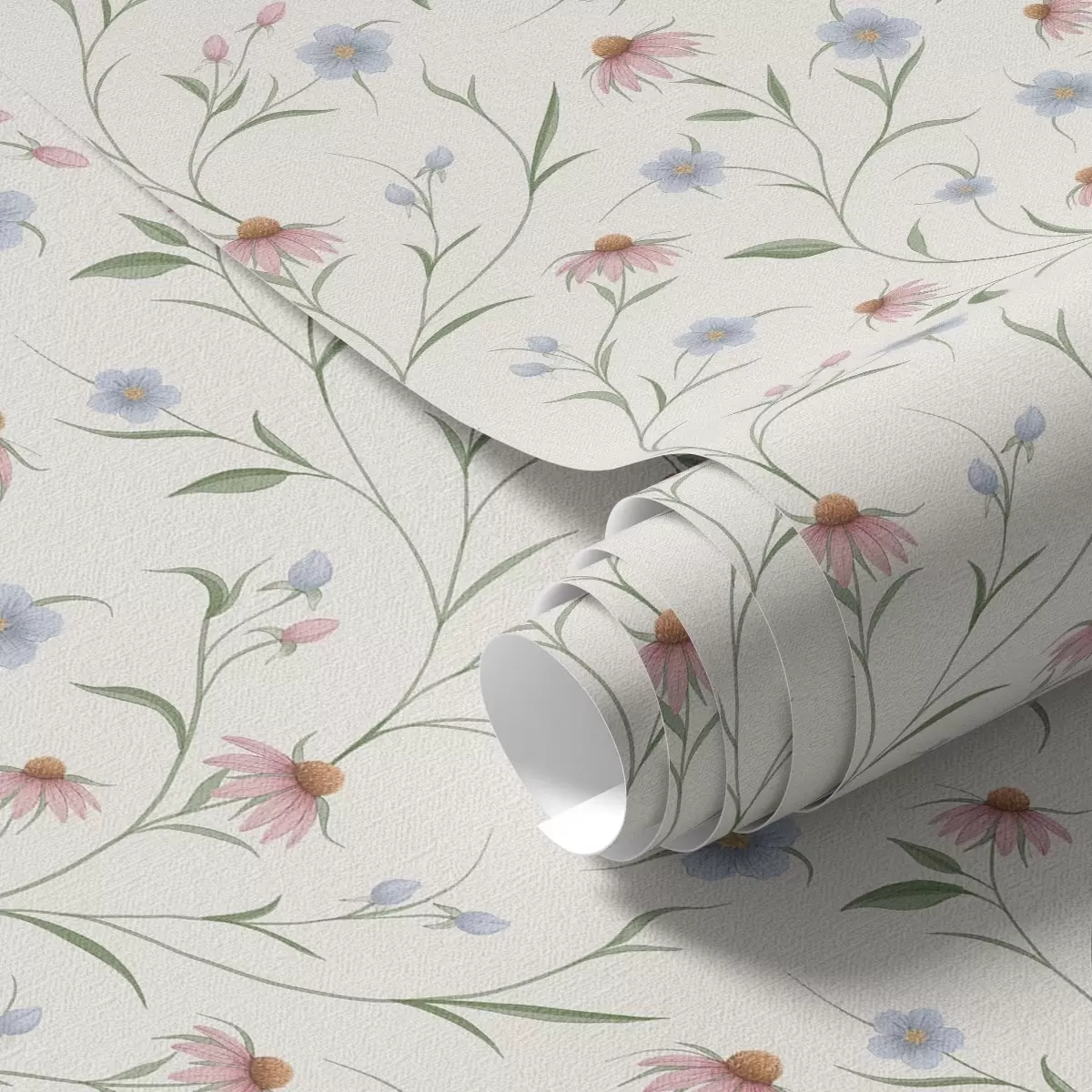 Tapeta Poľné sedmokrásky a echinacea na smotanovom pozadí, ľahkosť Nr. a00614
