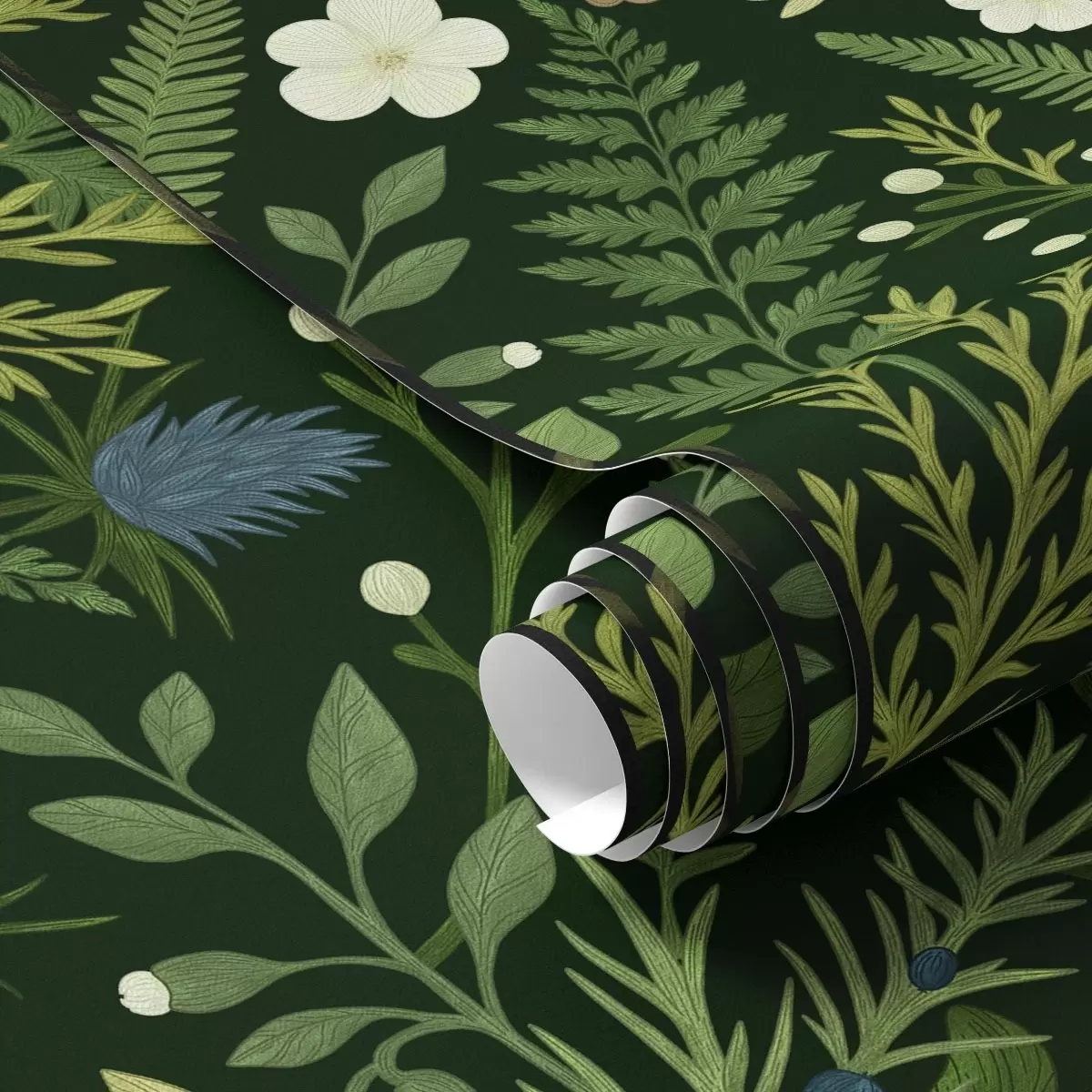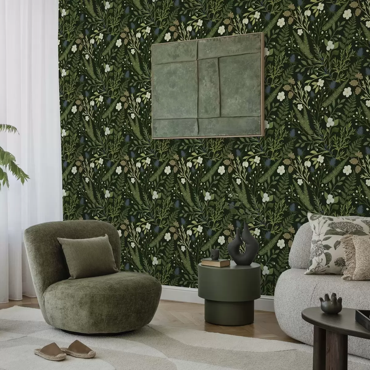 Tapeta Lesné bylinky a bobule na tmavozelenom pozadí Nr. a00621v2