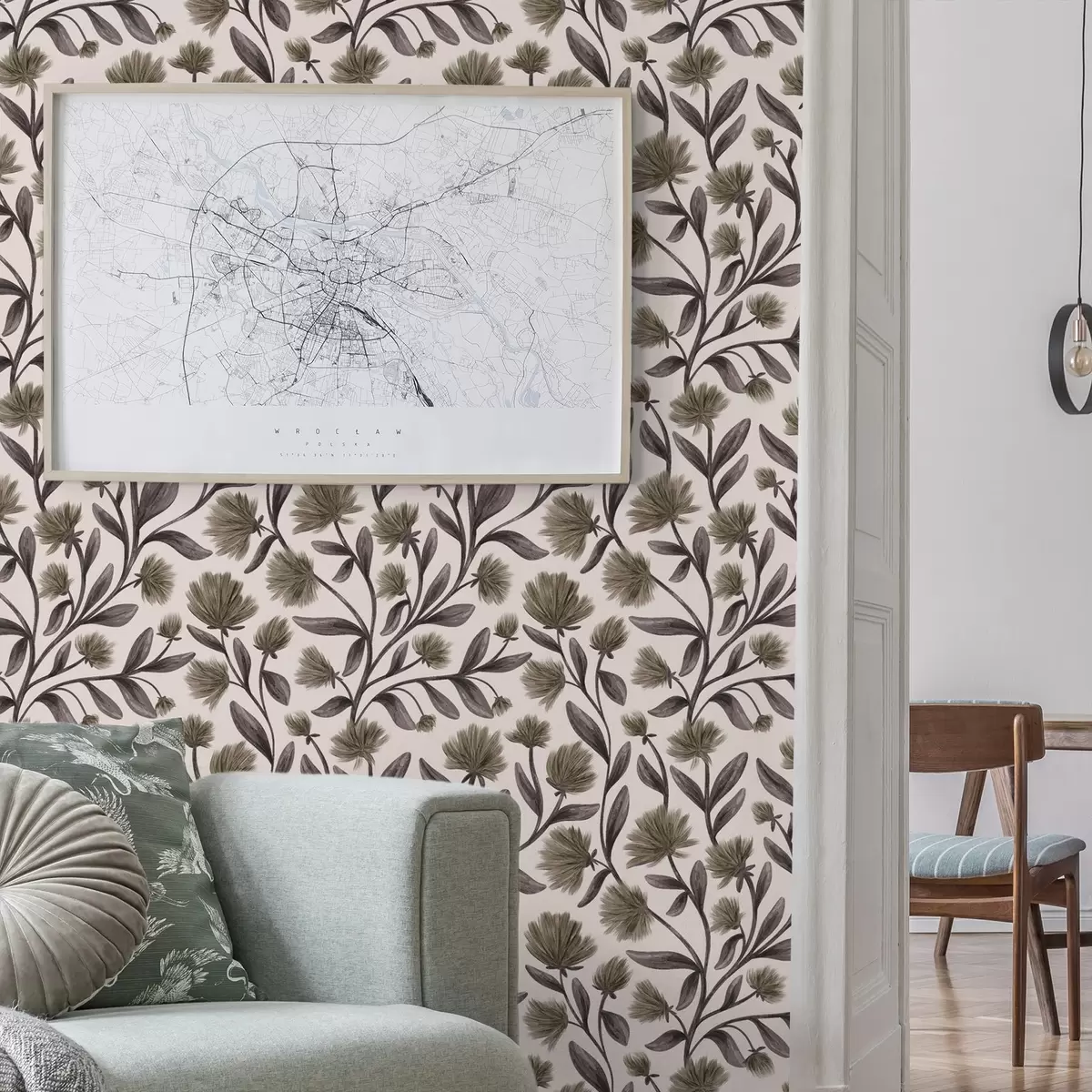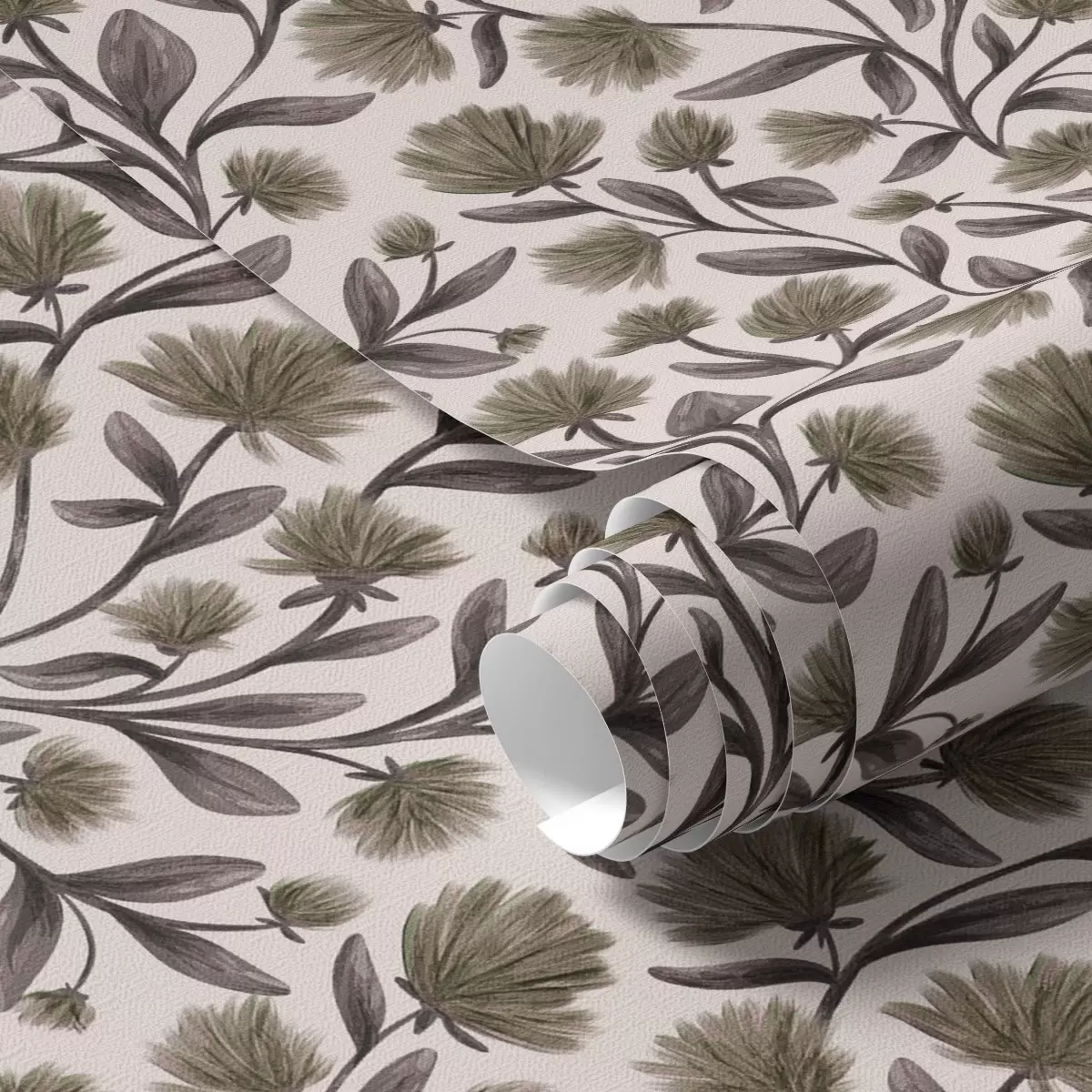 Tapeta Divoké kvety v sivohnedých odtieňoch na smotanovom pozadí Nr. a00623v1