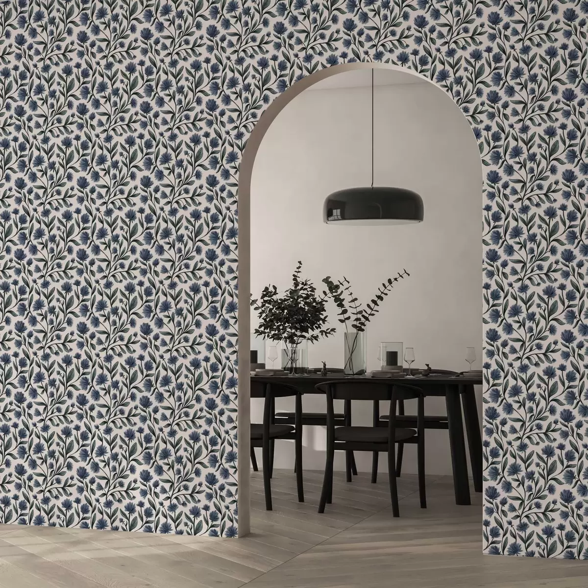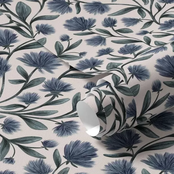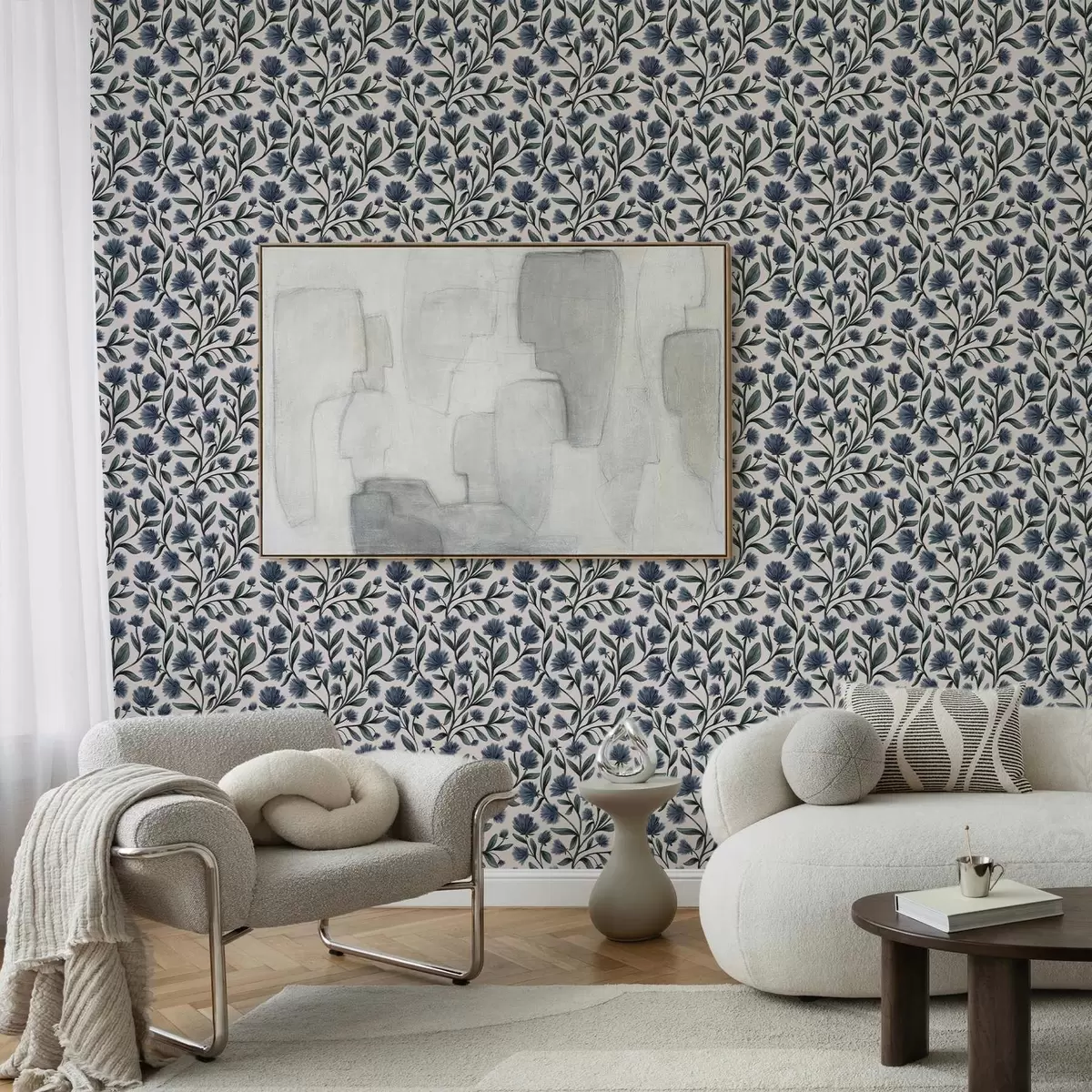 Tapeta Divoké kvety v modrozelenej palete na smotanovom pozadí Nr. a00623v2