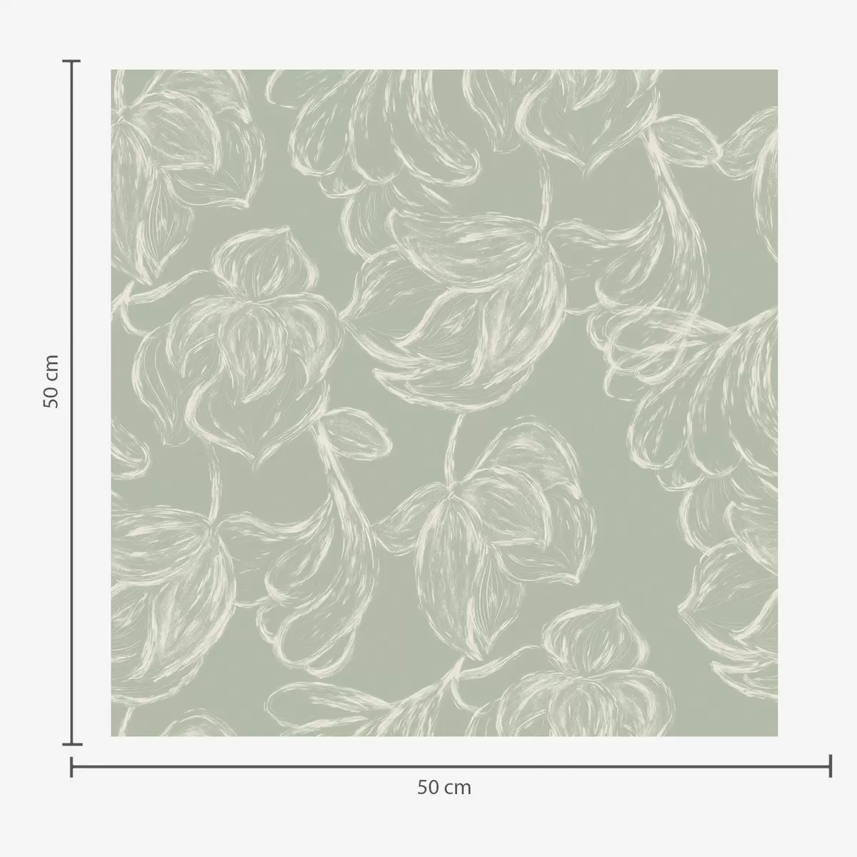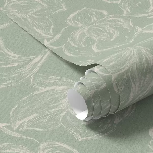 Tapeta Lineárne veľké kvety, kriedové ťahy na šalviovom pozadí Nr. a00625v1